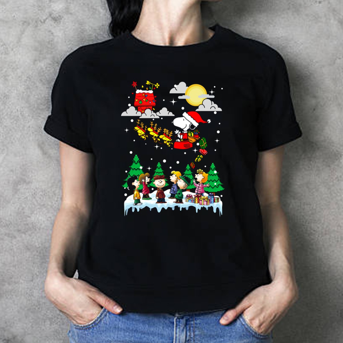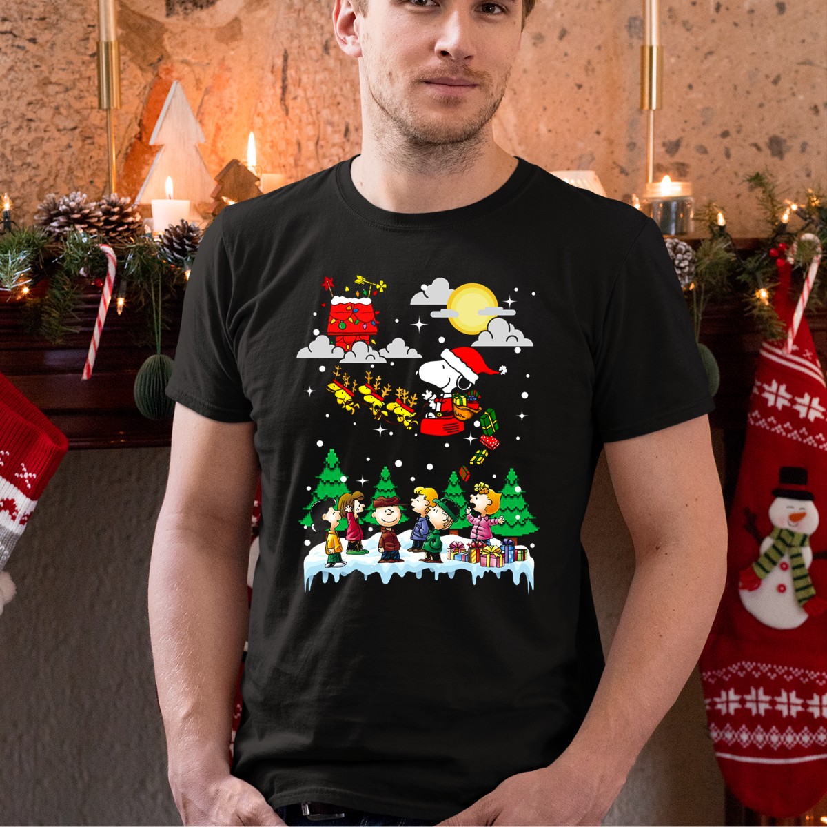 Celebrate the holiday spirit with our Peanuts Christmas Charlie Brown Snoopy Santa Sleigh Woodstock Scene T-Shirt! Perfect for fans of all ages, this festive tee brings the beloved Peanuts characters to life, making it an ideal choice for casual wear, themed events, or daily outings during the holiday season. Made with a fan-made design printed in the USA, this shirt combines comfort and style, ensuring you spread joy wherever you go.