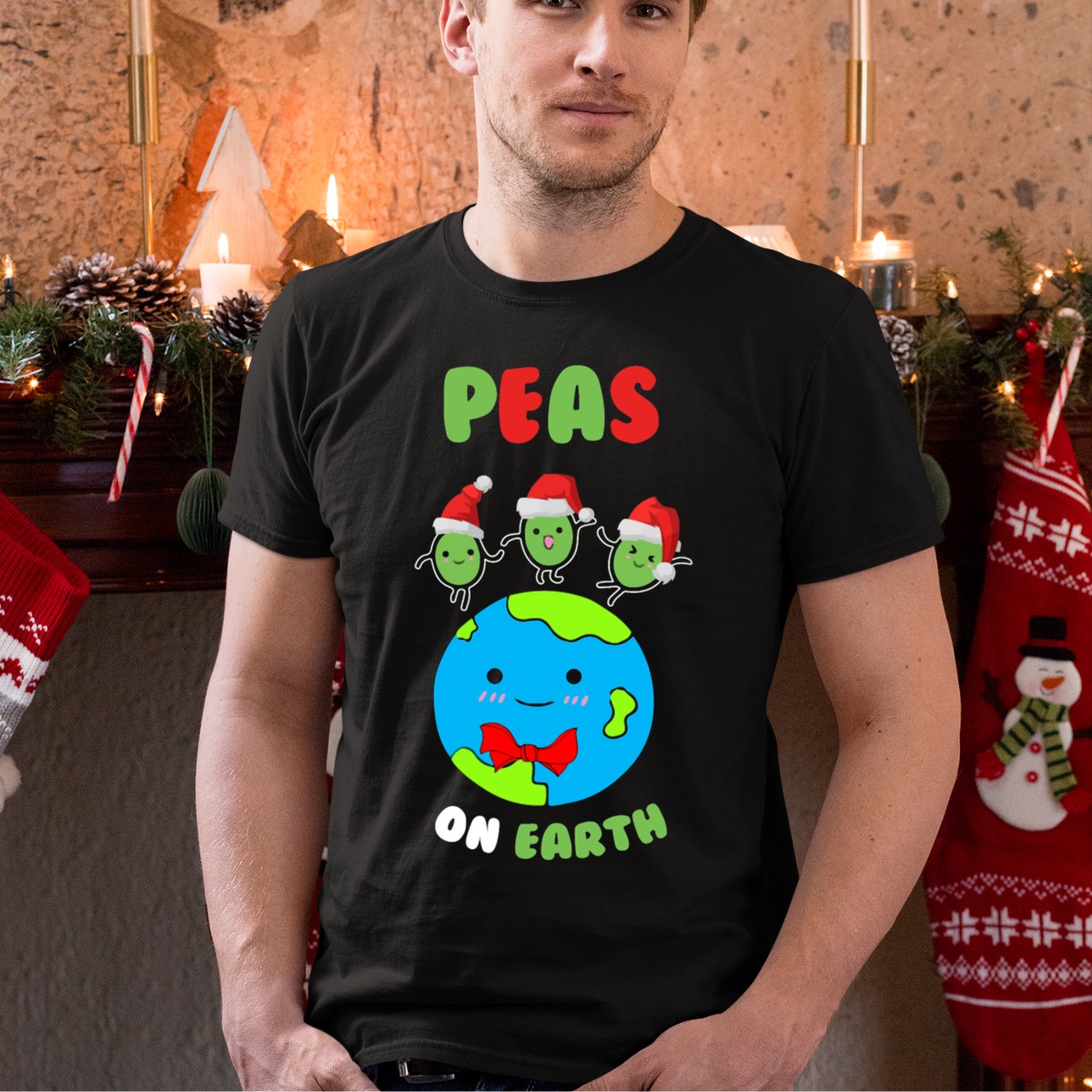 Be the first to review “Peas On Earth Christmas Festive Green Globe Santa Hats T-Shirt”