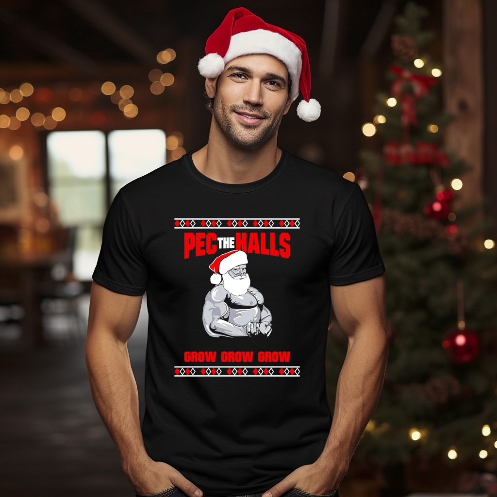 Get into the festive spirit with our “Pec The Halls” Santa Grow Grow Grow Christmas T-Shirt! Perfect for holiday gatherings, themed events, or casual daily wear, this fan-made design showcases your love for Christmas with a fun and playful twist. Crafted for comfort and style, it’s an ideal choice for anyone looking to spread cheer during the holiday season.