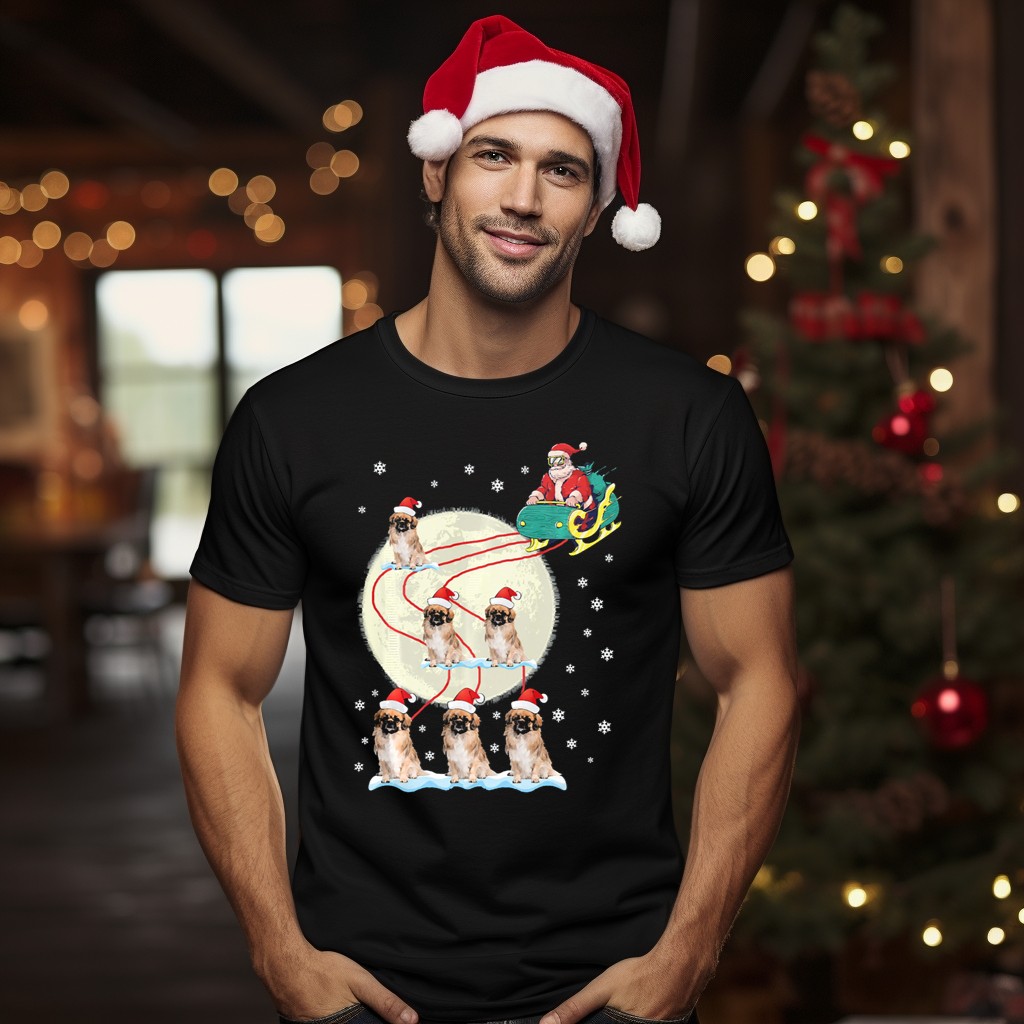 Be the first to review “Pekingese Dogs Santa Reindeer Christmas Moon Snowflakes T-Shirt”