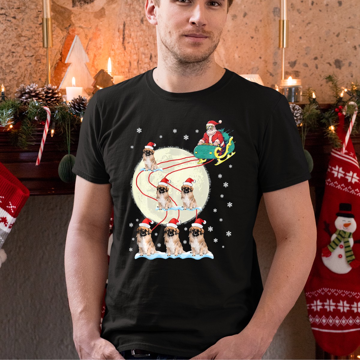 Pekingese Dogs Santa Reindeer Christmas Moon Snowflakes T-Shirt