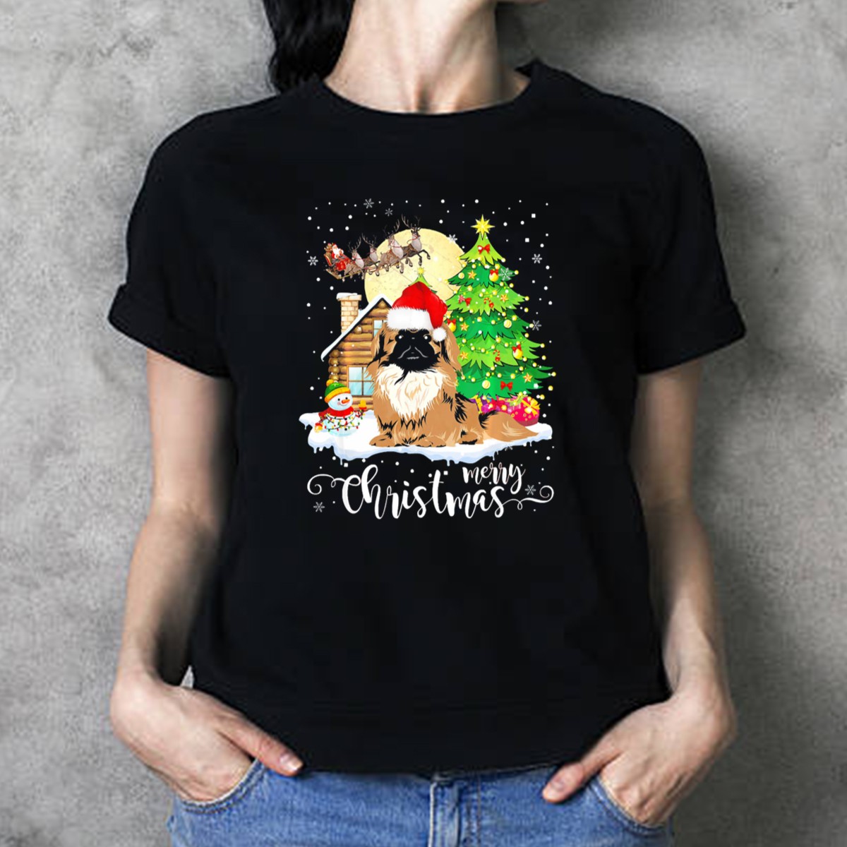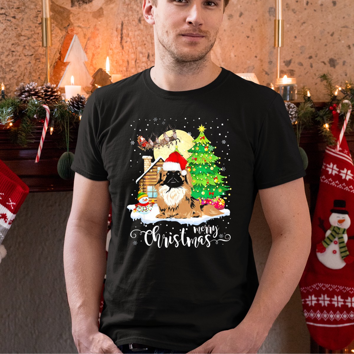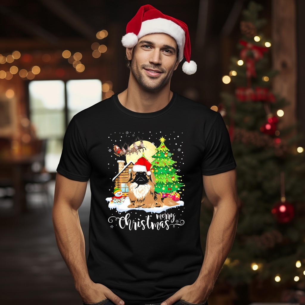 Celebrate the festive season in style with our Pekingese Merry Christmas T-Shirt! This delightful design features an adorable Pekingese wearing a Santa hat, surrounded by a charming snowman and a beautifully decorated Christmas tree. Perfect for dog lovers and holiday enthusiasts alike, this shirt is ideal for casual wear, themed events, or simply spreading cheer during the holiday season. Printed in the USA, it combines comfort with a unique fan-made design that will make you stand out at any gathering.