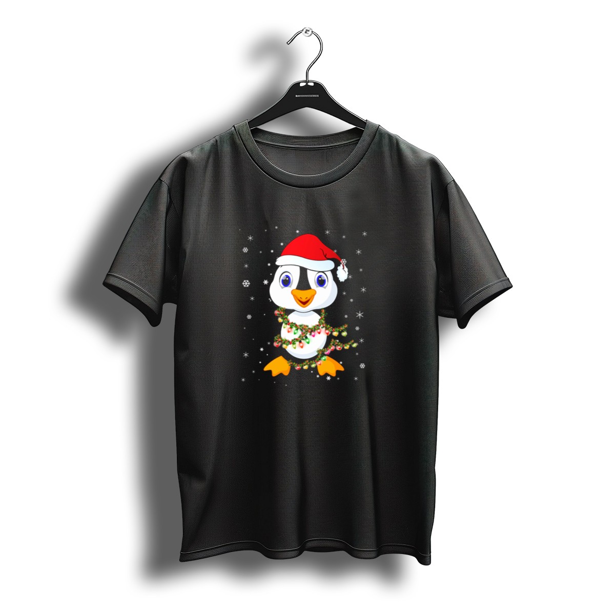 Be the first to review “Penguin Santa Hat Christmas Lights Snowflakes T-Shirt”