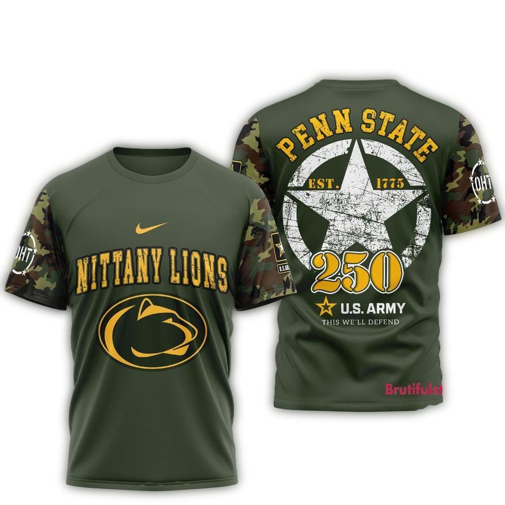 Show your pride in the Penn State Nittany Lions with this unique all-over printed T-shirt, perfect for fans of all ages! Whether you’re cheering from the stands, hanging out with friends, or showcasing your team spirit in everyday life, this shirt combines comfort and style seamlessly. Its eye-catching design makes it a standout piece in your casual wardrobe, ensuring you express your passion for both the Nittany Lions and the 250 years of US Army heritage.