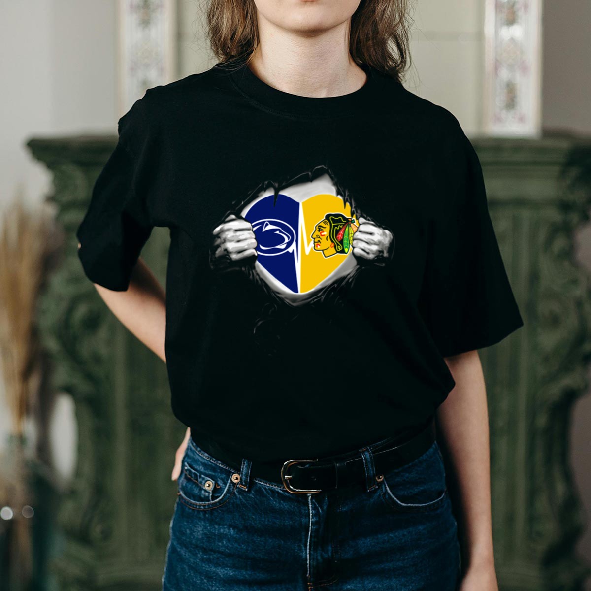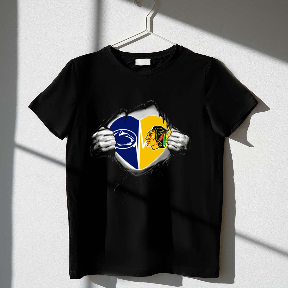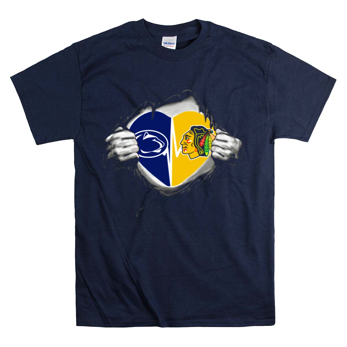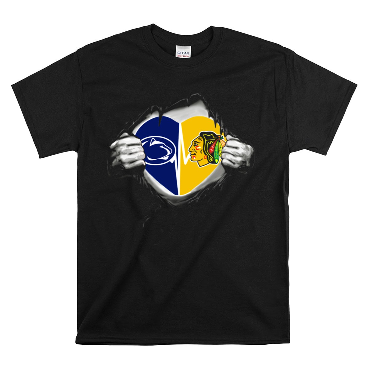 Show your love for both the Penn State Nittany Lions and the Chicago Blackhawks with our Torn Heart T-Shirt! This uniquely designed fan-made tee is perfect for passionate sports enthusiasts who want to showcase their dual allegiance in a stylish way. Ideal for casual outings, themed events, or daily wear, this shirt combines comfort with a bold statement, making it a must-have for any sports lover’s wardrobe.