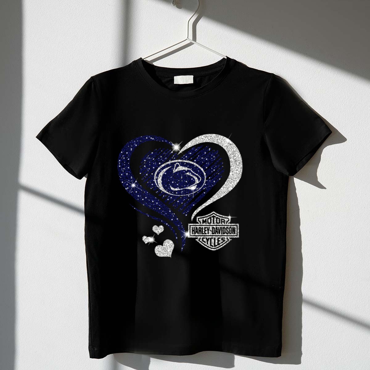Show your unwavering support for the Penn State Nittany Lions with our HD Heart Logo Sparkle T-Shirt! Perfect for fans of all ages, this stylish tee is designed for casual outings, themed events, or simply showcasing your school spirit during daily activities. The eye-catching sparkle design sets it apart, making it a unique addition to any fan’s wardrobe. Proudly printed in the USA, this shirt combines comfort and style, ensuring you look great while cheering on your team!