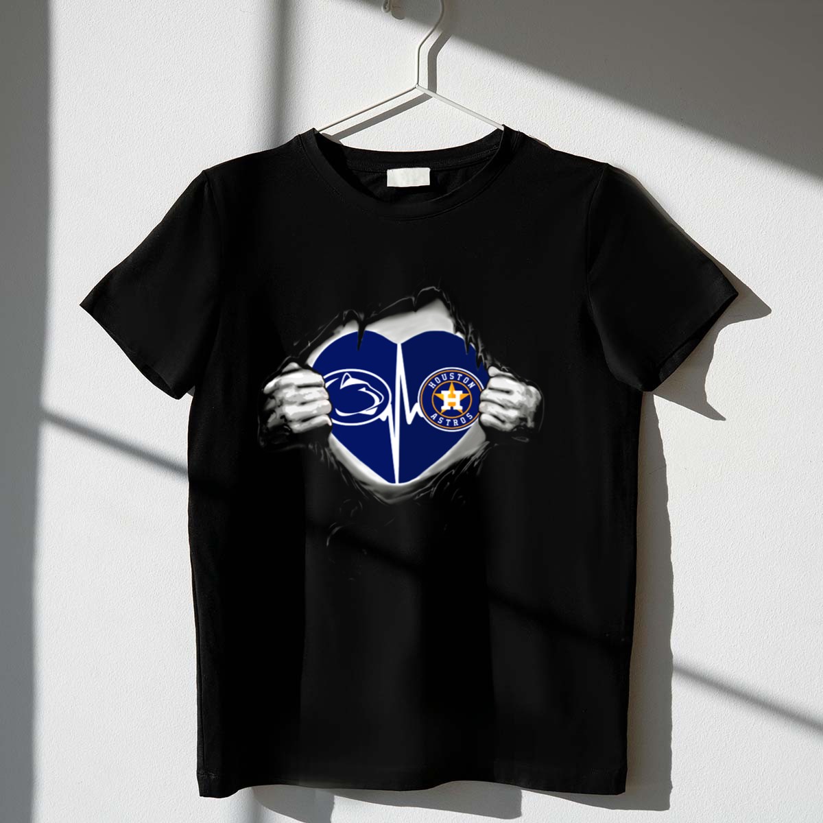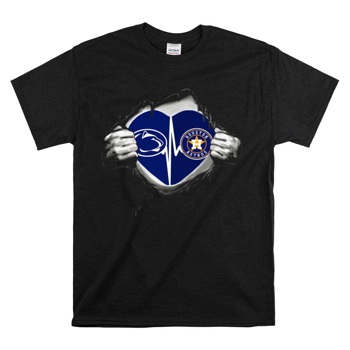Show your love for both the Penn State Nittany Lions and the Houston Astros with our Heartbeat Rip T-Shirt! Perfect for fans who want to express their passion for college and professional sports, this shirt is ideal for casual outings, game days, or themed events. With its unique fan-made design printed in the USA, this T-shirt combines comfort and style, making it a standout piece in any fan’s wardrobe.