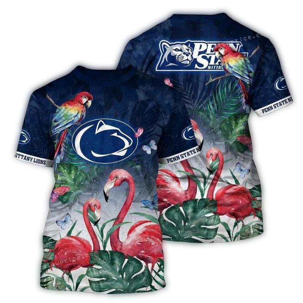 Embrace your spirited side with our Penn State Nittany Lions Parrot and Flamingo Floral Art AOP T-Shirt, perfect for fans and casual wearers alike! This vibrant, graphic tee is ideal for game days, outdoor outings, or simply dressing up your everyday style with a splash of fun. The unique all-over print showcases a dazzling blend of parrot and flamingo designs, making it a standout piece in any wardrobe.
