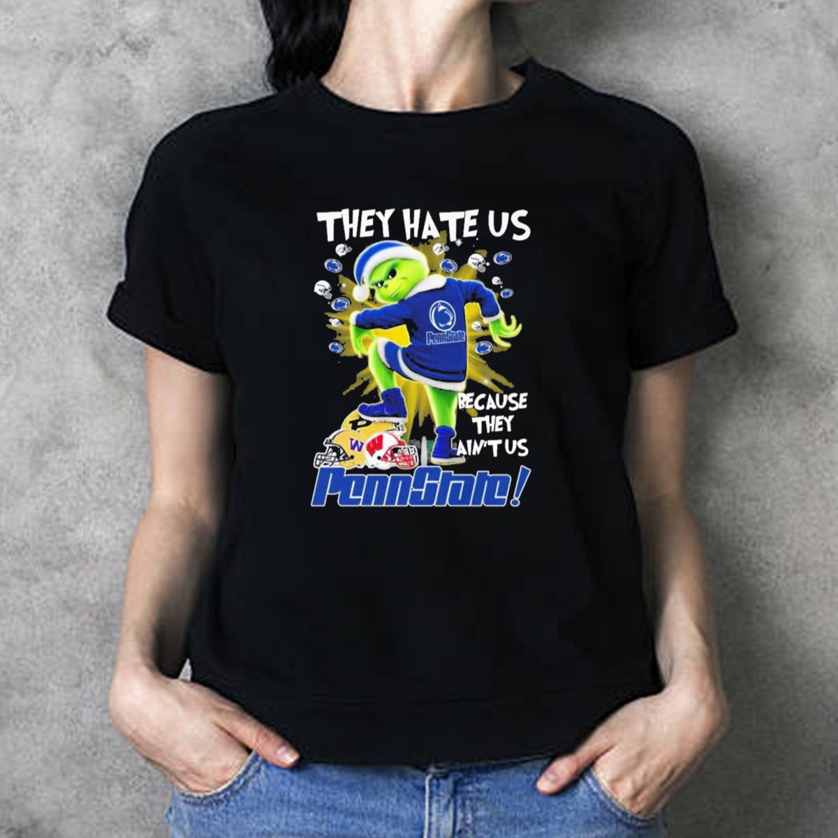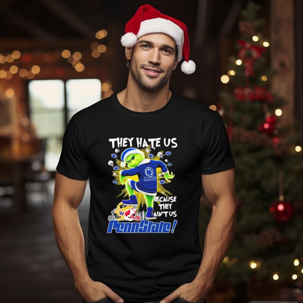 Show your Penn State pride this holiday season with our unique “They Hate Us Because They Aint Us” Grinch Merry Christmas T-Shirt! Perfect for passionate fans and anyone who loves to celebrate the spirit of the season, this shirt embodies the fun and rivalry of college football. Whether you’re at a themed event, casual gathering, or just enjoying daily wear, this fan-made design, printed in the USA, is sure to make you stand out in style.