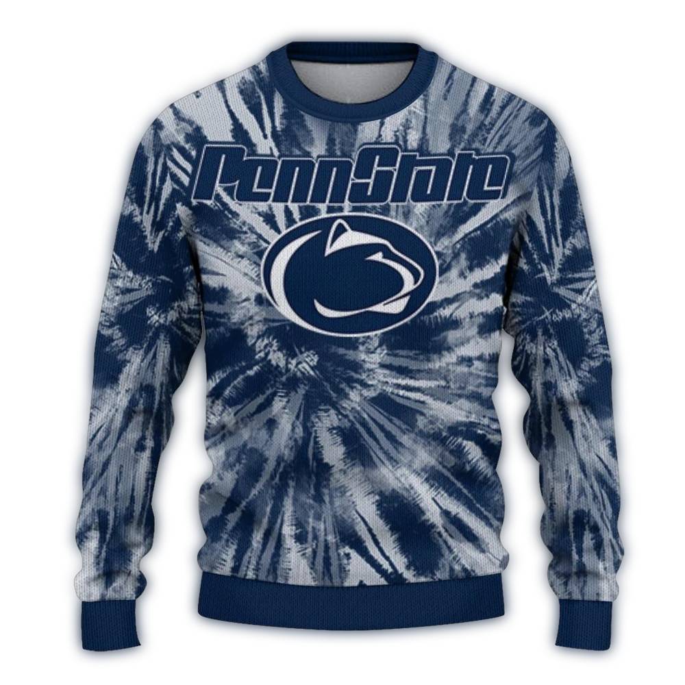 Get ready to show your spirit and embrace the holiday cheer with our custom-printed Penn State Nittany Lions Tie Dye Pattern Ugly Sweater! Perfect for die-hard fans and anyone looking to add a splash of fun to their winter wardrobe, this cozy sweater is ideal for game day gatherings, festive parties, or just lounging at home while cheering for your team. Stand out in style with its unique tie dye design that brings a festive flair to any occasion!