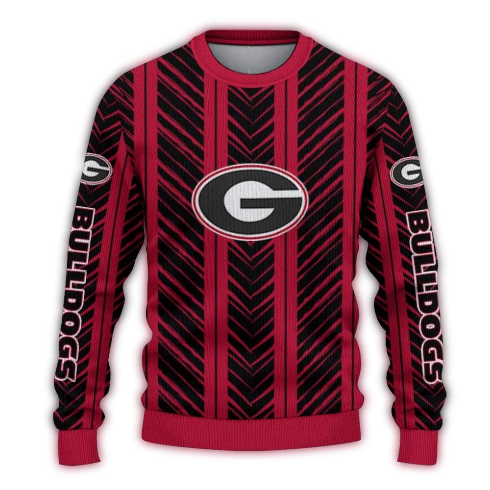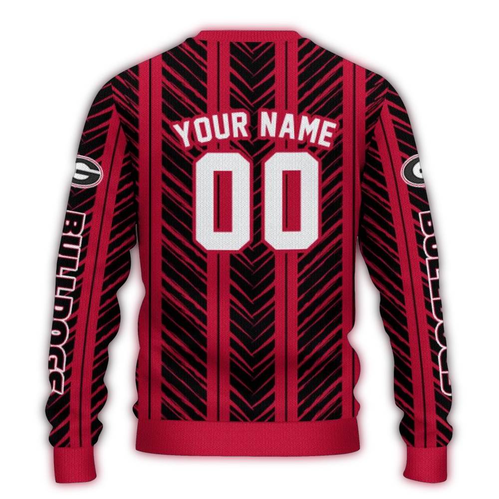 Get ready to cheer for your favorite team in style with our Personalized Georgia Bulldogs Chevron Rows Ugly Sweater! Perfect for die-hard fans, this cozy masterpiece is ideal for game days, holiday parties, or simply lounging at home while showing off your school spirit. With its festive design and playful chevron pattern, you’ll stand out in the crowd while staying warm and comfortable!