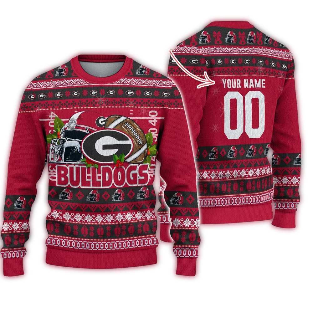 Get ready to show off your team spirit this holiday season with our Personalized Georgia Bulldogs Logo Team Football Christmas Ugly Sweater! Perfect for die-hard fans and festive gatherings, this sweater combines the joy of the holidays with the pride of your favorite team. Whether you’re at a holiday party, lounging at home, or cheering on the Bulldogs, this unique sweater will make you the life of the celebration!