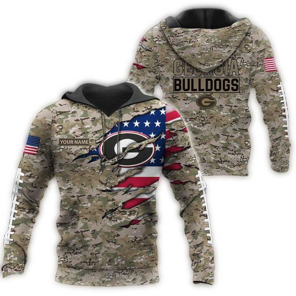 Introducing the Personalized Georgia Bulldogs Military Veterans Camouflage All-Over Hoodie, perfect for fans who want to proudly display their team spirit while honoring our brave veterans. This cozy and stylish hoodie is great for daily wear or casual outdoor activities, making it an essential piece for any Georgia Bulldogs supporter. Its unique camouflage design sets it apart, allowing you to showcase your loyalty in a standout way.