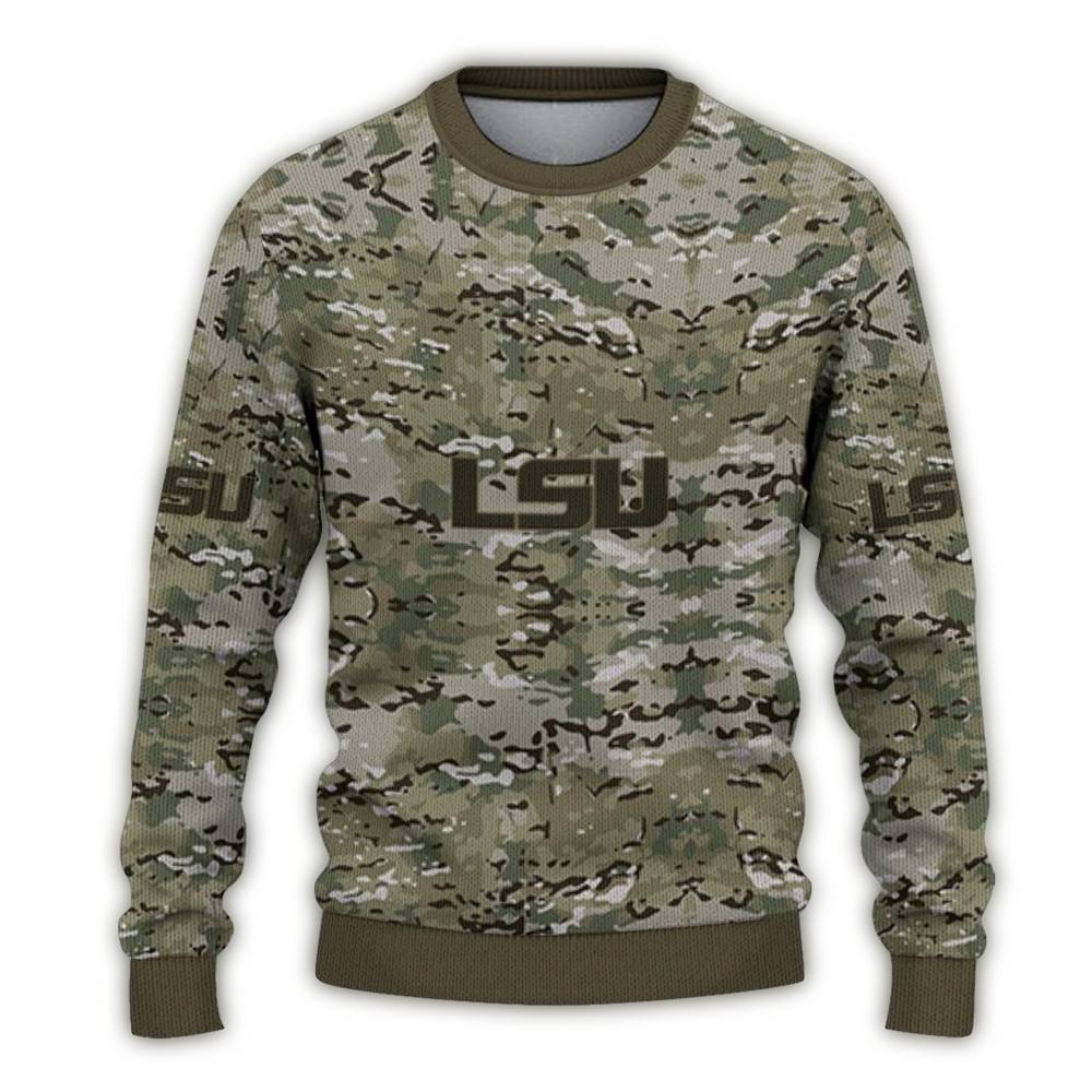 Personalized Lsu Tigers Camouflage Blend Ugly Sweater