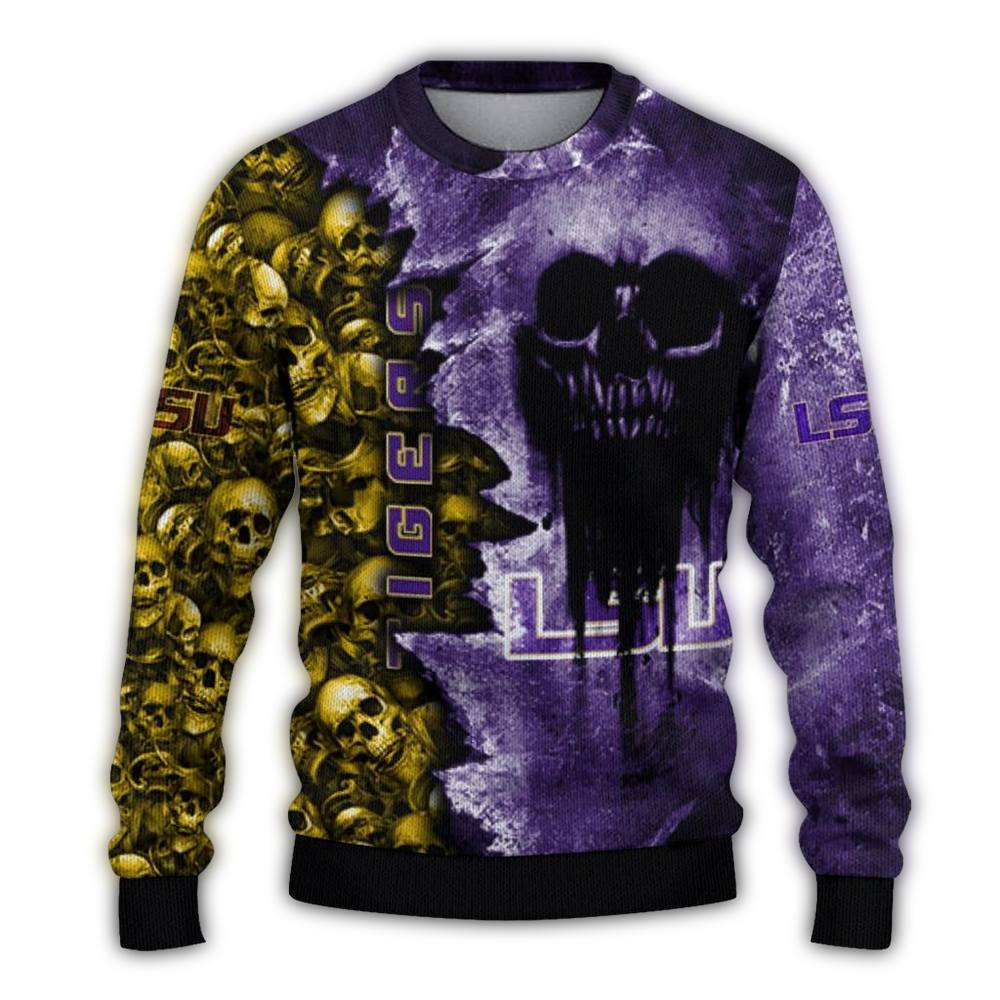 Get ready to show off your team spirit with our Personalized LSU Tigers Skull Collage Ugly Sweater! Perfect for die-hard fans and anyone looking to add a quirky twist to their winter wardrobe, this sweater is ideal for holiday parties, game days, or just lounging at home in style. Its unique design is sure to turn heads and spread cheer wherever you go!