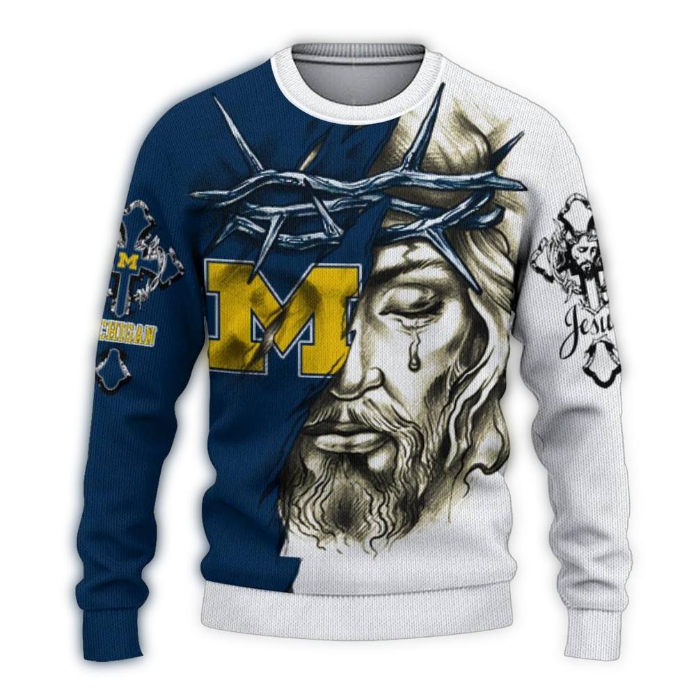 Get ready to spread some holiday cheer with our Personalized Michigan Wolverines Jesus Tears Ugly Sweater! Perfect for die-hard fans and holiday revelers alike, this cozy sweater adds a fun twist to your winter wardrobe. Whether you’re heading to a game day party or snuggling up at home, this unique design is sure to spark conversation and laughs!