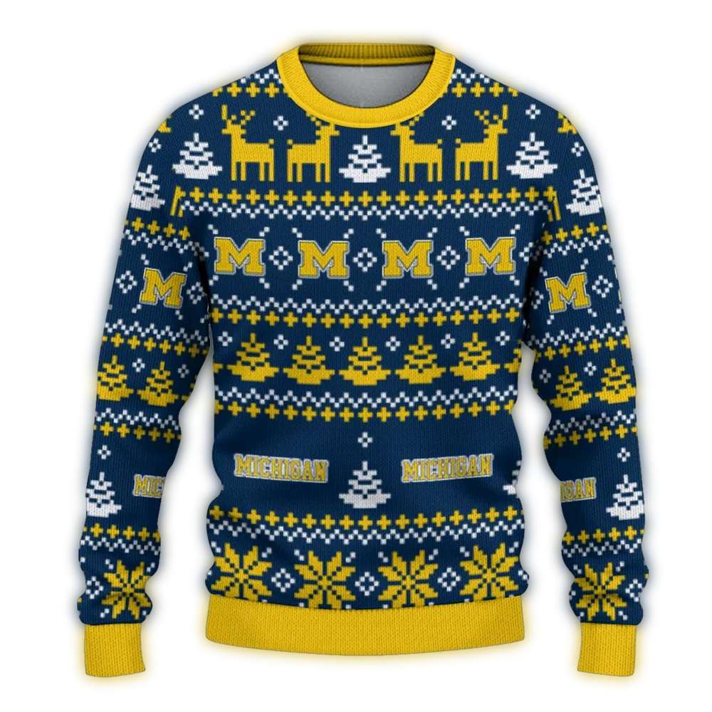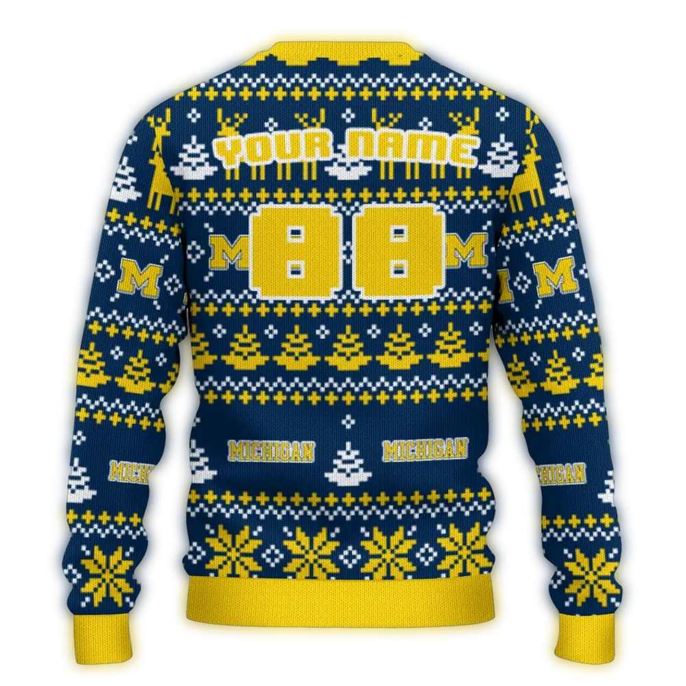 Personalized Michigan Wolverines Pattern Christmas Ugly Sweater