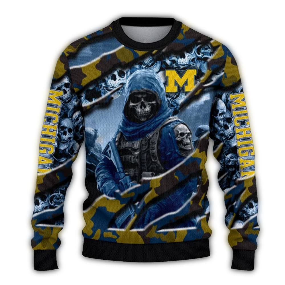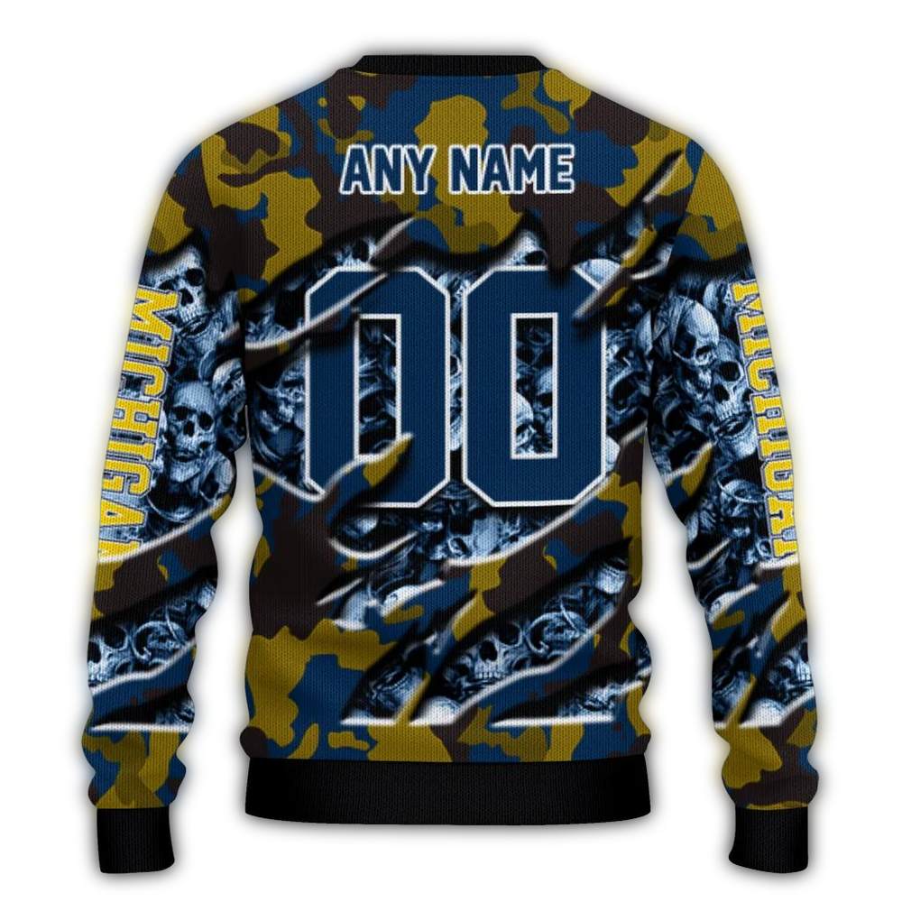 Get ready to showcase your team spirit with our Personalized Michigan Wolverines Skull Horde Ugly Sweater! Perfect for die-hard Wolverines fans, this cozy and festive sweater is ideal for game day gatherings, holiday parties, or just lounging at home while cheering on your favorite team. With a unique skull horde design, it’s sure to make you the life of the party and a standout in any crowd!
