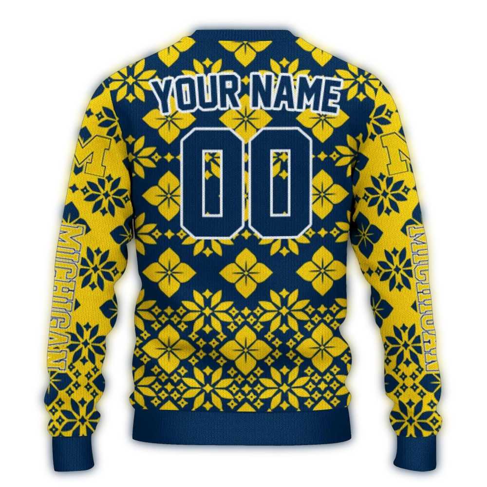Personalized Michigan Wolverines Snowflake Matrix Ugly Sweater