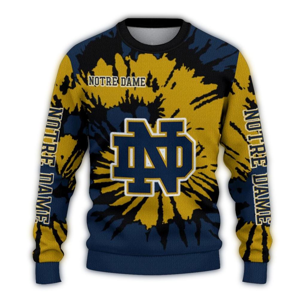 Get ready to cheer on your favorite team in style with our Personalized Notre Dame Fighting Irish Burst Swirl Ugly Sweater! Perfect for die-hard fans and casual supporters alike, this fun and festive sweater turns heads whether you’re at a game, a holiday gathering, or just lounging at home. With its unique burst swirl design, it’s sure to bring a smile to your face and festive cheer to any occasion.