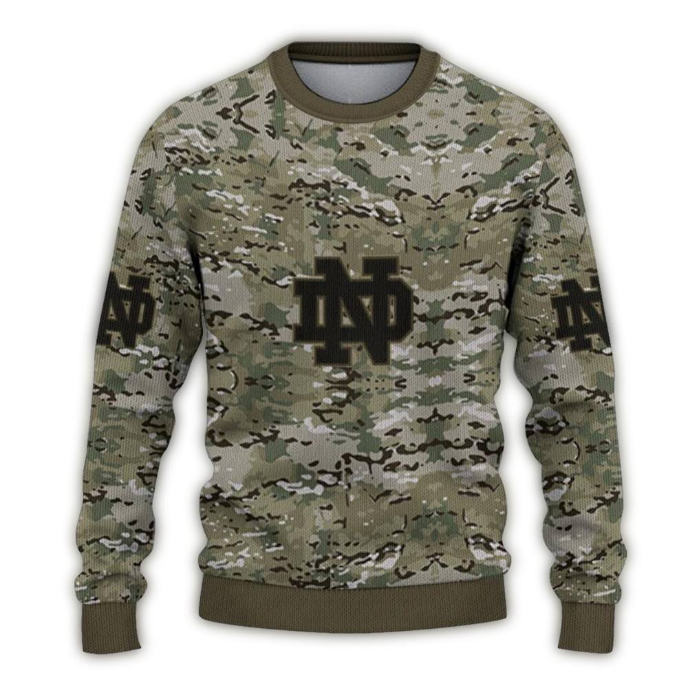 Get ready to cheer on your team while staying cozy and stylish with our Personalized Notre Dame Fighting Irish Camouflage Blend Ugly Sweater! Perfect for passionate fans, this unique sweater brings a festive twist to your winter wardrobe, making it an ideal choice for game days, holiday gatherings, or just lounging at home. Stand out in the crowd with its eye-catching design that showcases your team spirit!