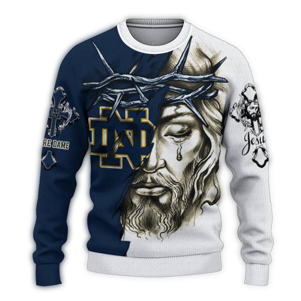 Personalized Notre Dame Fighting Irish Jesus Tears Ugly Sweater