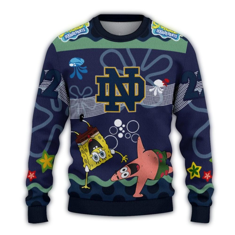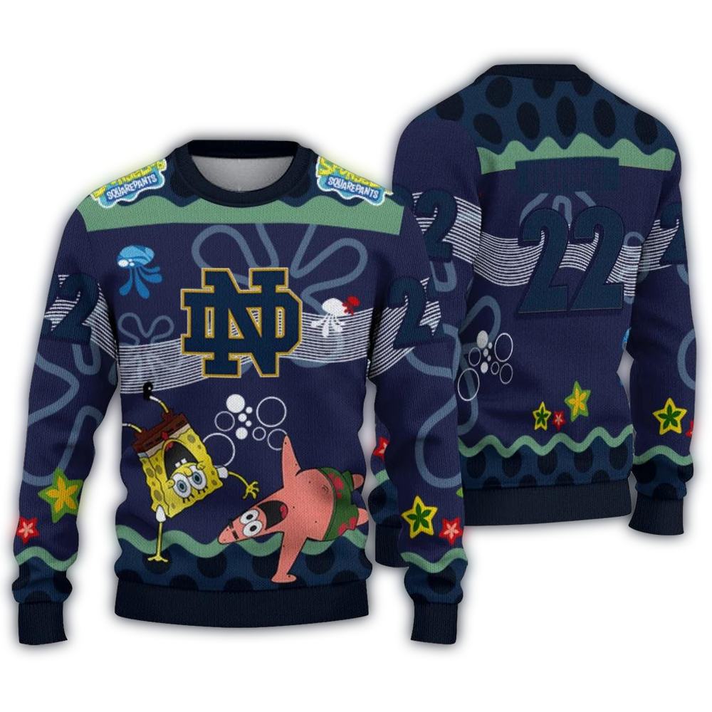 Get ready to cheer for your favorite team in style with our Personalized Notre Dame Fighting Irish SpongeBob Cartoon Ugly Sweater! Perfect for fans of all ages, this fun and festive sweater is ideal for holiday parties, game days, or cozy nights in. With its unique blend of team spirit and playful design, you’ll stand out while showing off your Fighting Irish pride!