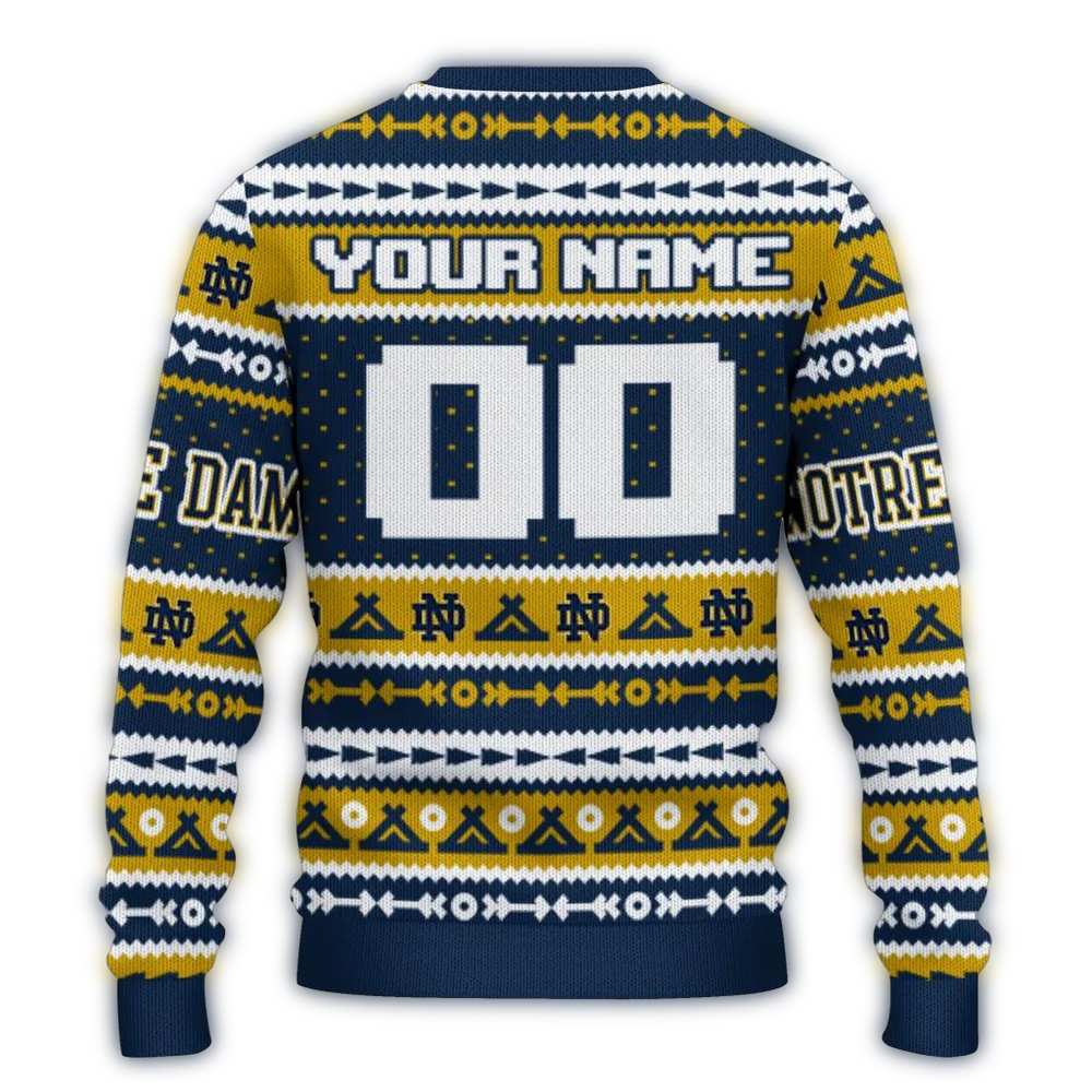 Personalized Notre Dame Fighting Irish Tent Stripes Ugly Sweater