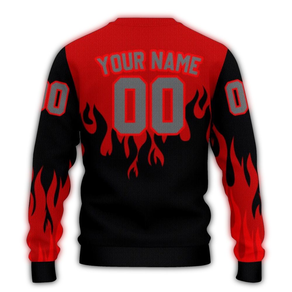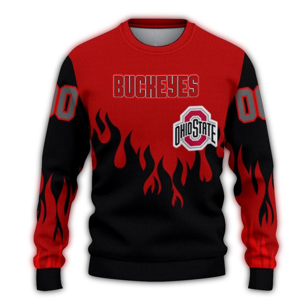 Get ready to turn heads this winter with our Personalized Ohio State Buckeyes Flame Outline Ugly Sweater! Perfect for die-hard Buckeyes fans, this festive piece brings a unique flair to your holiday gatherings, game day celebrations, or cozy nights in. With its eye-catching design, it’s not just a sweater; it’s a statement!