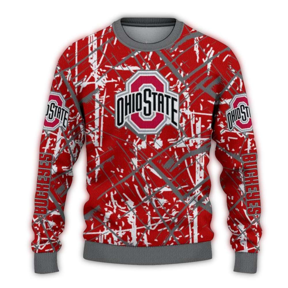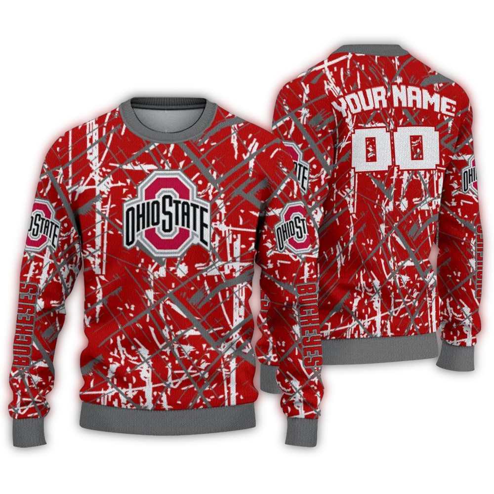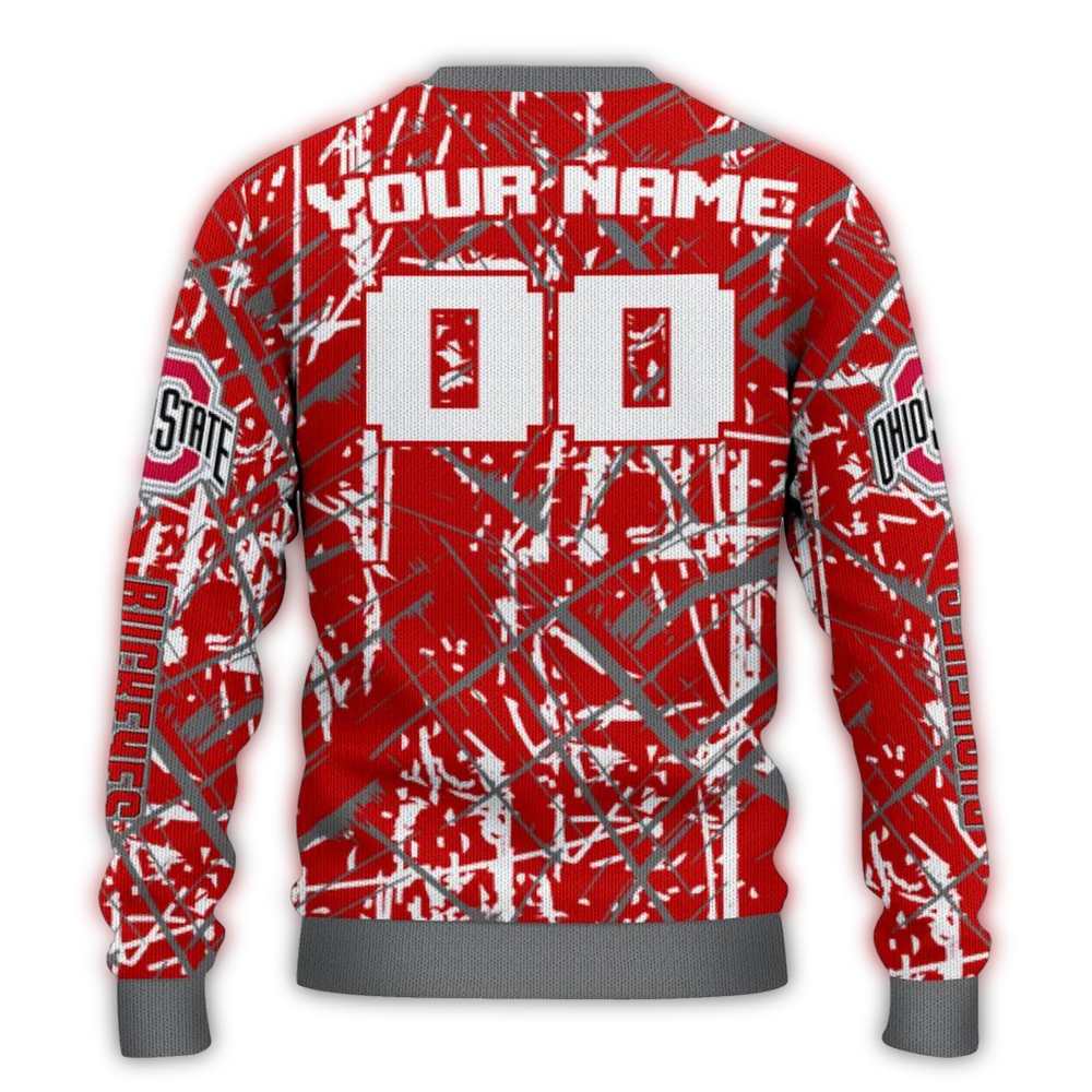 Get ready to cheer in style with our Personalized Ohio State Buckeyes Streak Overlay Ugly Sweater! Perfect for die-hard Buckeyes fans, this cozy and festive sweater is your go-to choice for game days, holiday parties, or simply lounging at home with friends. Its unique design showcases your team spirit while ensuring comfort and warmth, making it a standout piece in any winter wardrobe.