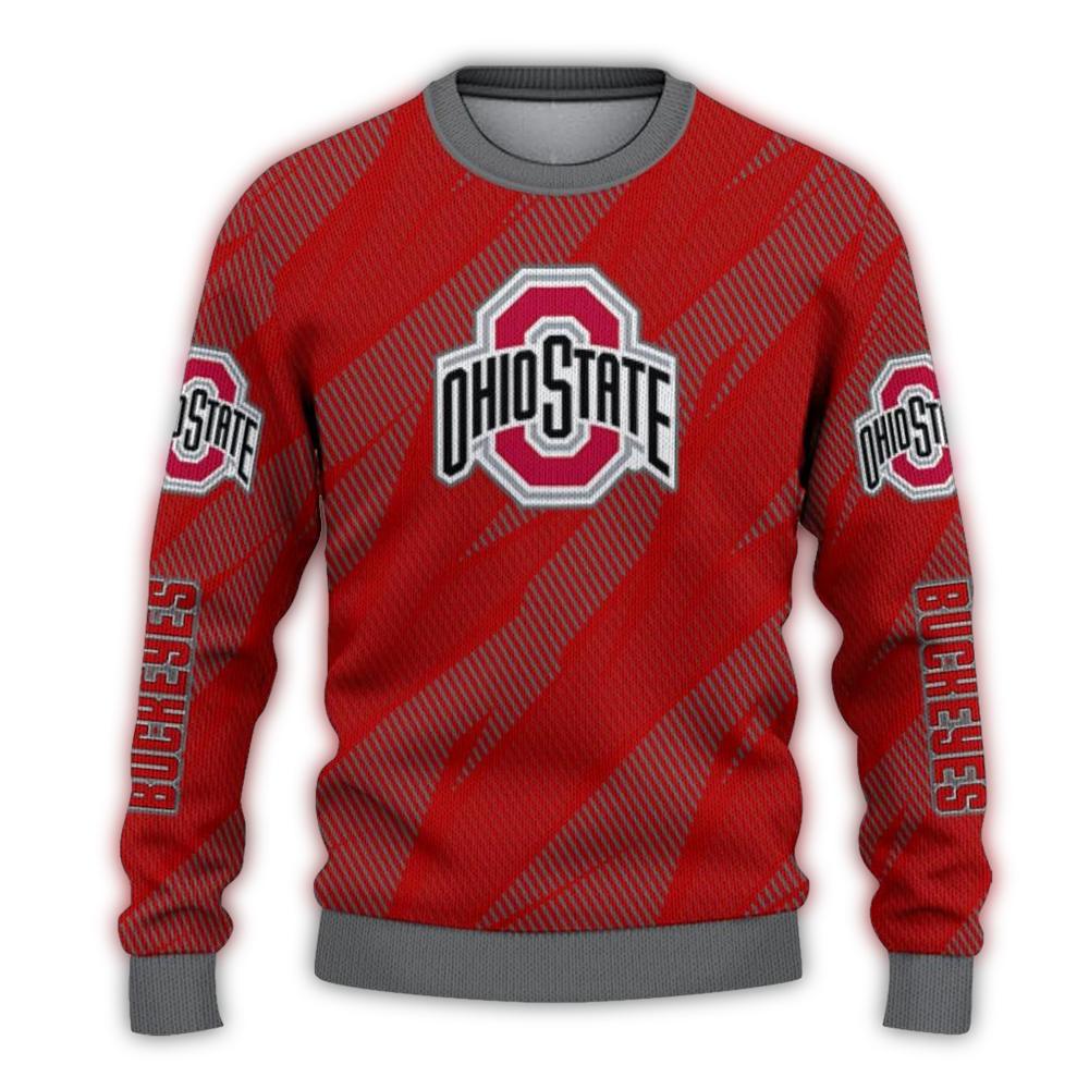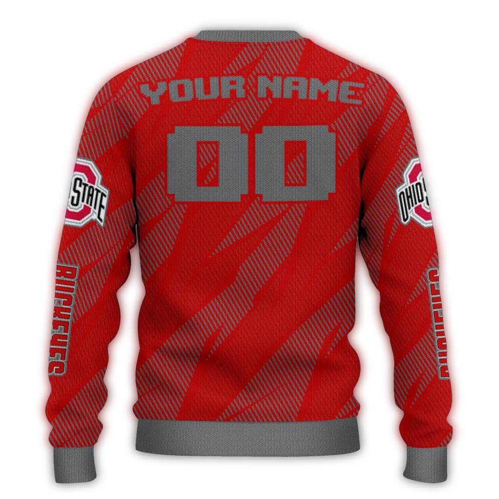 Get ready to cheer on your favorite team in style with our Personalized Ohio State Buckeyes Stripe Motion Ugly Sweater! Perfect for devoted fans, this cozy sweater is ideal for game days, holiday parties, or simply lounging at home while showing off your Buckeyes spirit. Its unique design brings together festive flair and team pride, making it a must-have addition to your winter wardrobe.