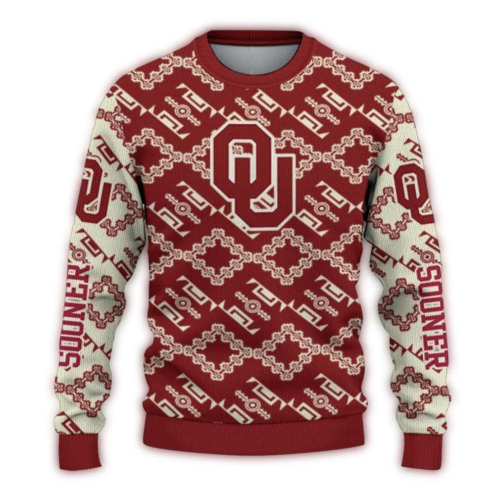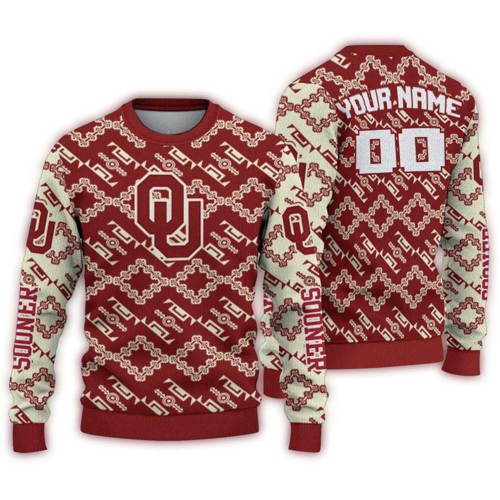 Personalized Oklahoma Sooners Lattice Gridwork Ugly Sweater