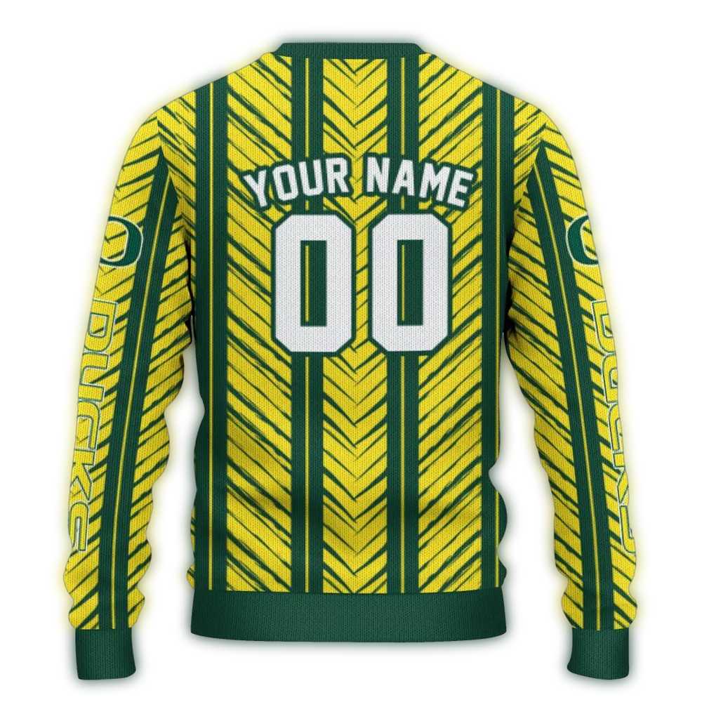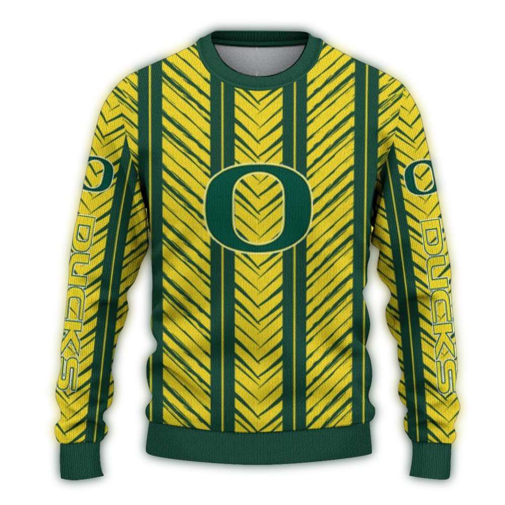 Get ready to show off your team spirit with our Personalized Oregon Ducks Chevron Rows Ugly Sweater! Perfect for fans of all ages, this delightful sweater adds a touch of festive cheer to any holiday gathering or cozy night in. Stand out at parties or while cheering on your team from the comfort of your home with its unique design that captures the essence of the Oregon Ducks!