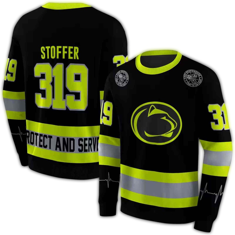 Elevate your streetwear game with our Personalized Penn State Nittany Lions Safety Motif Black Neon Green AOP Sweatshirt. Designed for passionate fans, this sweatshirt is perfect for casual outings, cheering at games, or simply lounging at home. The vibrant all-over print adds a striking edge, making it a standout piece in any wardrobe.