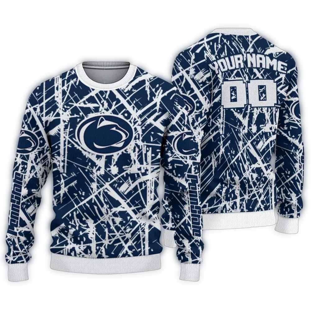 Get ready to show your school spirit in a fun and festive way with our Personalized Penn State Nittany Lions Streak Overlay Ugly Sweater! Perfect for passionate fans, this sweater is ideal for game day gatherings, holiday parties, or cozy nights in. With its vibrant design, it’s not just a sweater; it’s a statement piece that brings joy and a touch of whimsy to your winter wardrobe!