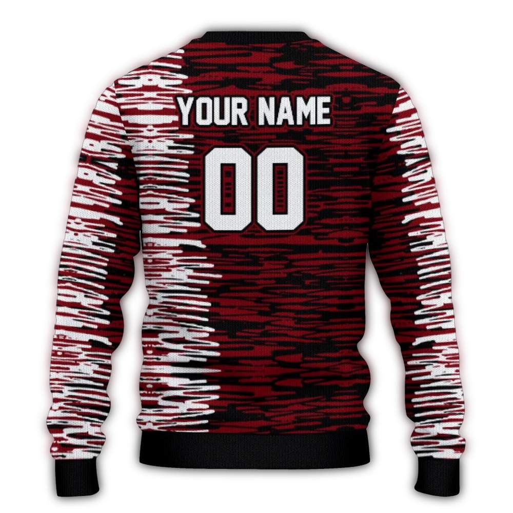 Get ready to showcase your team spirit in style with our Personalized South Carolina Gamecocks Camouflage Stripe Garnet Ugly Sweater! Perfect for die-hard fans, this fun and festive sweater is ideal for game day gatherings, holiday parties, or cozy nights in. Stand out from the crowd and embrace your love for the Gamecocks with a unique design that combines team pride with a playful twist!