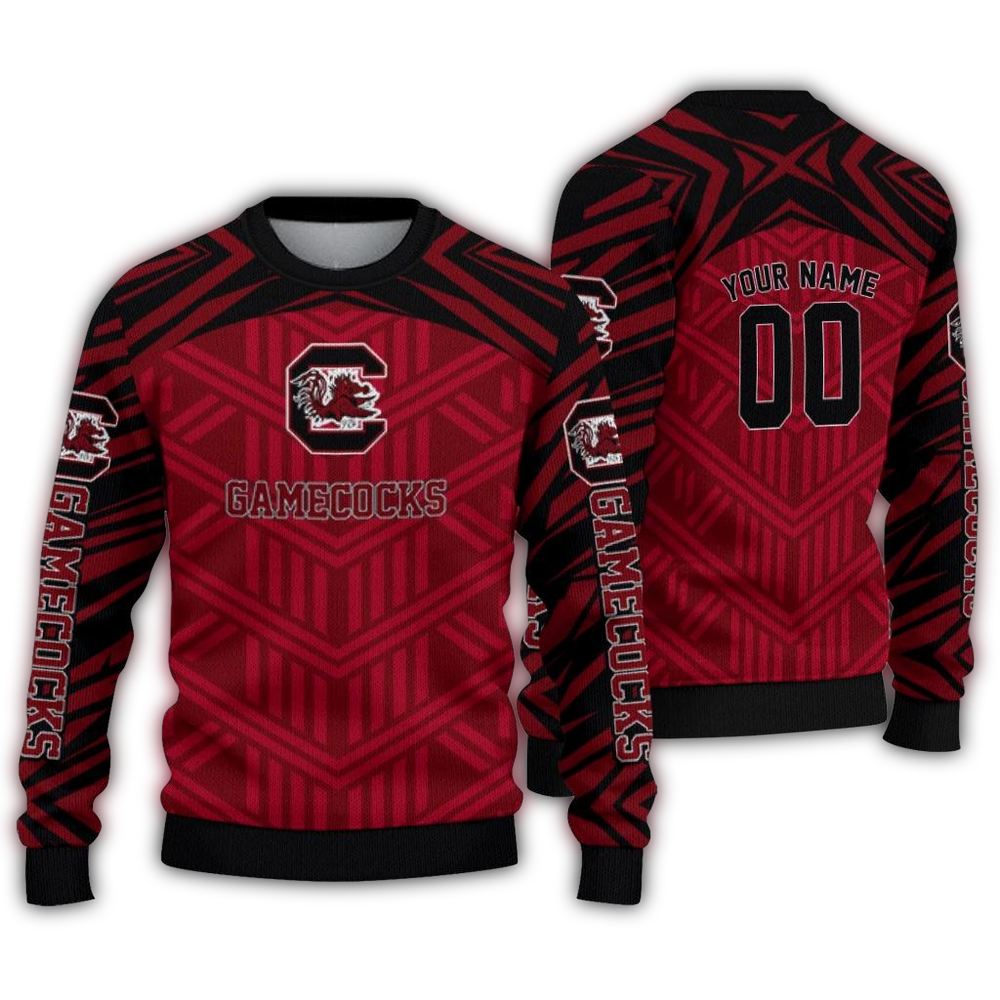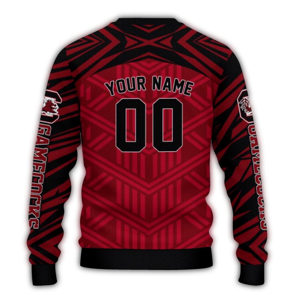 Get ready to cheer on your favorite team in style with our Personalized South Carolina Gamecocks Chevron Pattern Ugly Sweater! Perfect for dedicated fans, this cozy piece is ideal for game day, holiday parties, or simply lounging at home. Its unique chevron design showcases your team spirit while making you stand out in the crowd with a festive flair.