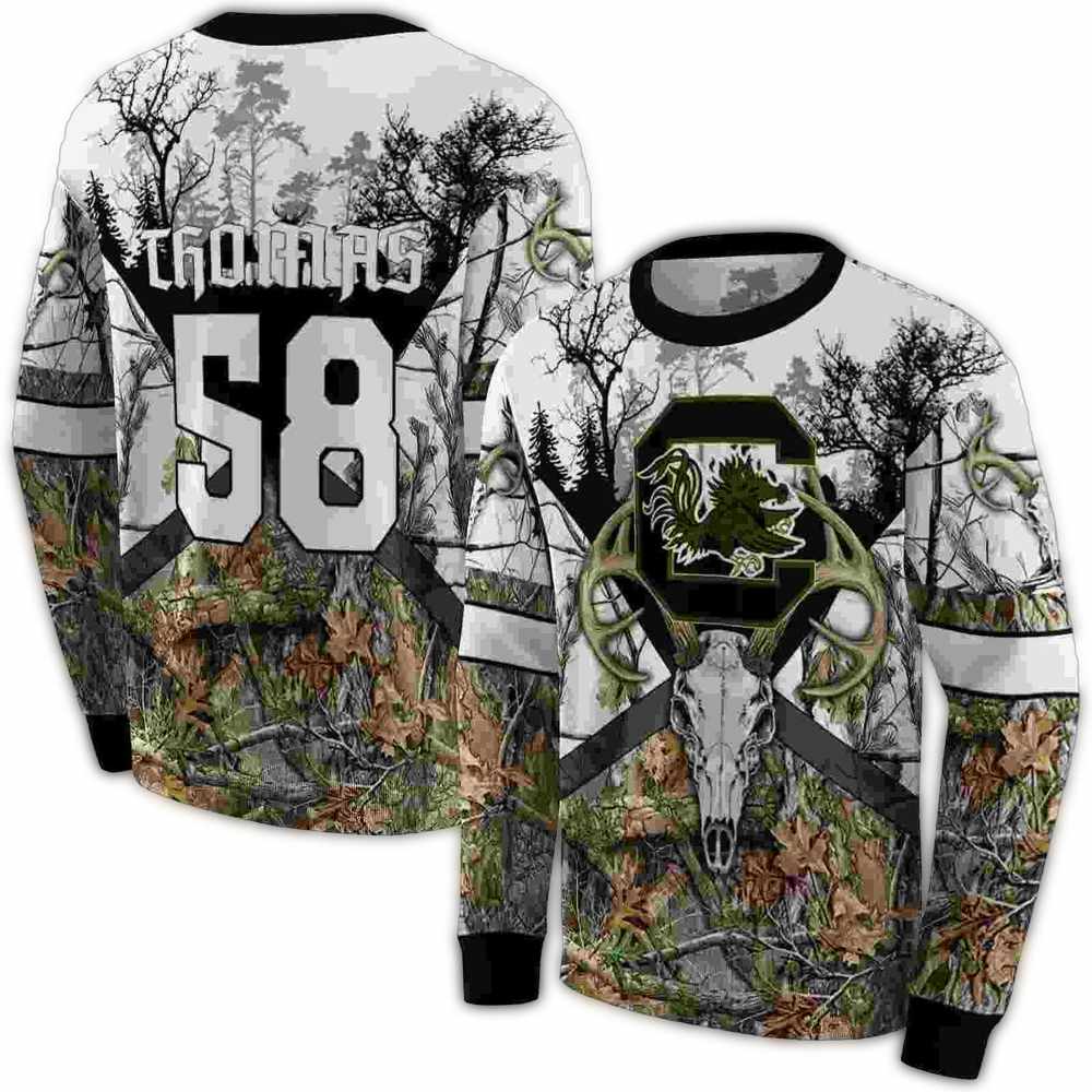 Introducing the Personalized South Carolina Gamecocks Forest Silhouette All-Over Printed Sweatshirt, a must-have addition for any Gamecocks fan looking to showcase their team spirit in style. Perfect for casual outings, school, or lounging at home, this sweatshirt combines comfort with a unique design, making it a standout piece in your wardrobe.