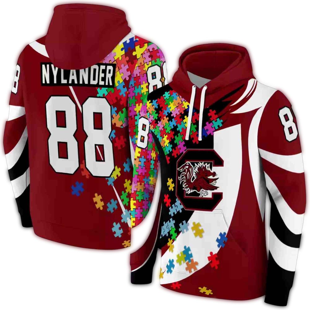 Show your team spirit with the Personalized South Carolina Gamecocks Puzzle Pieces AOP Hoodie, perfect for fans who want to express their love for the Gamecocks in style. This relaxed-fit hoodie is designed for both men and women, making it an ideal choice for casual outings, game days, or cozy evenings at home. With its unique all-over puzzle piece design, it stands out as a must-have for any dedicated supporter.