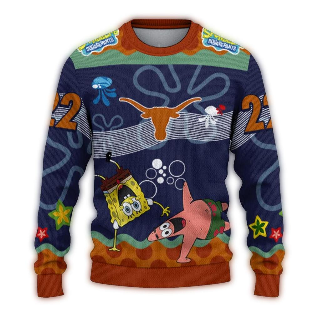 Personalized Texas Longhorns Spongebob Ugly Sweater