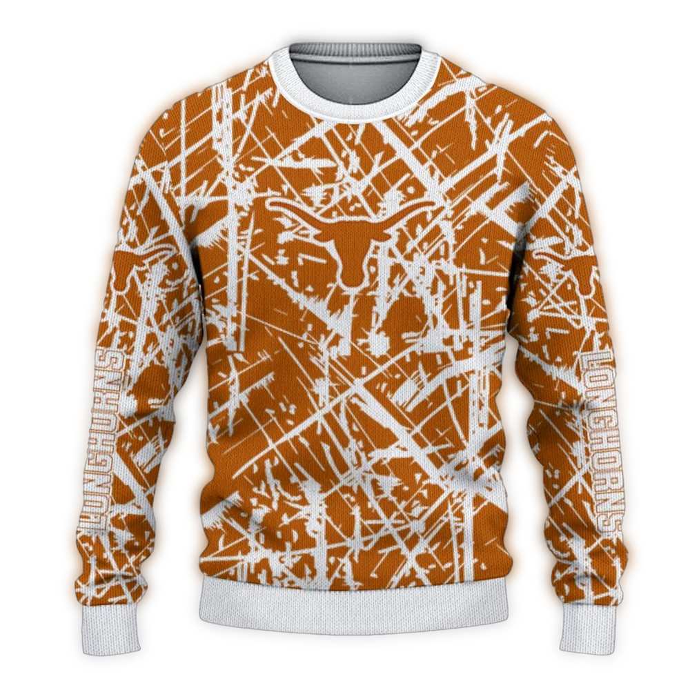 Personalized Texas Longhorns Streak Overlay Ugly Sweater