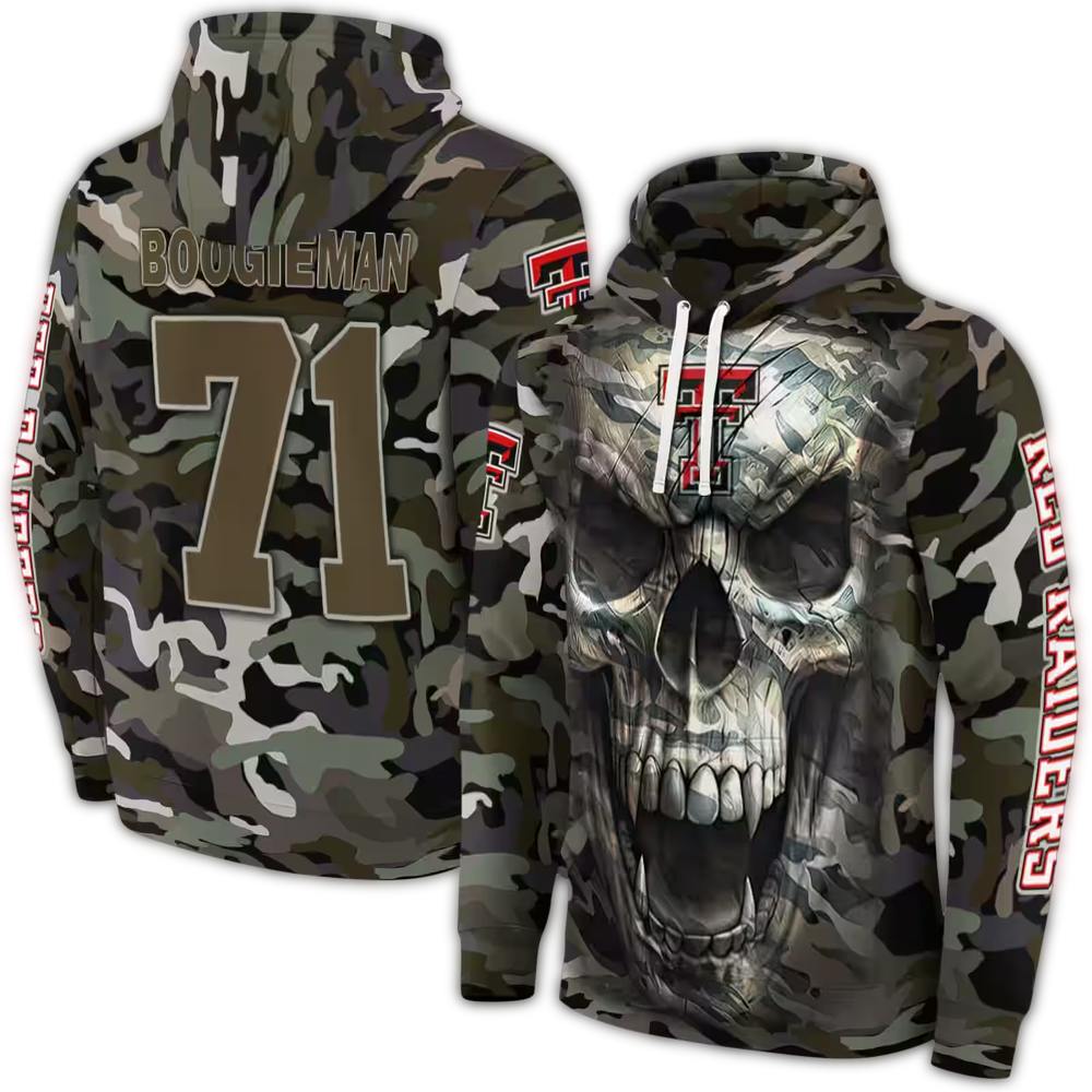 Personalized Texas Tech Red Raiders Camo Skull All-Over Print Hoodie