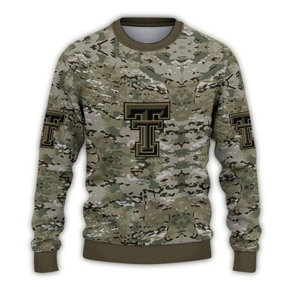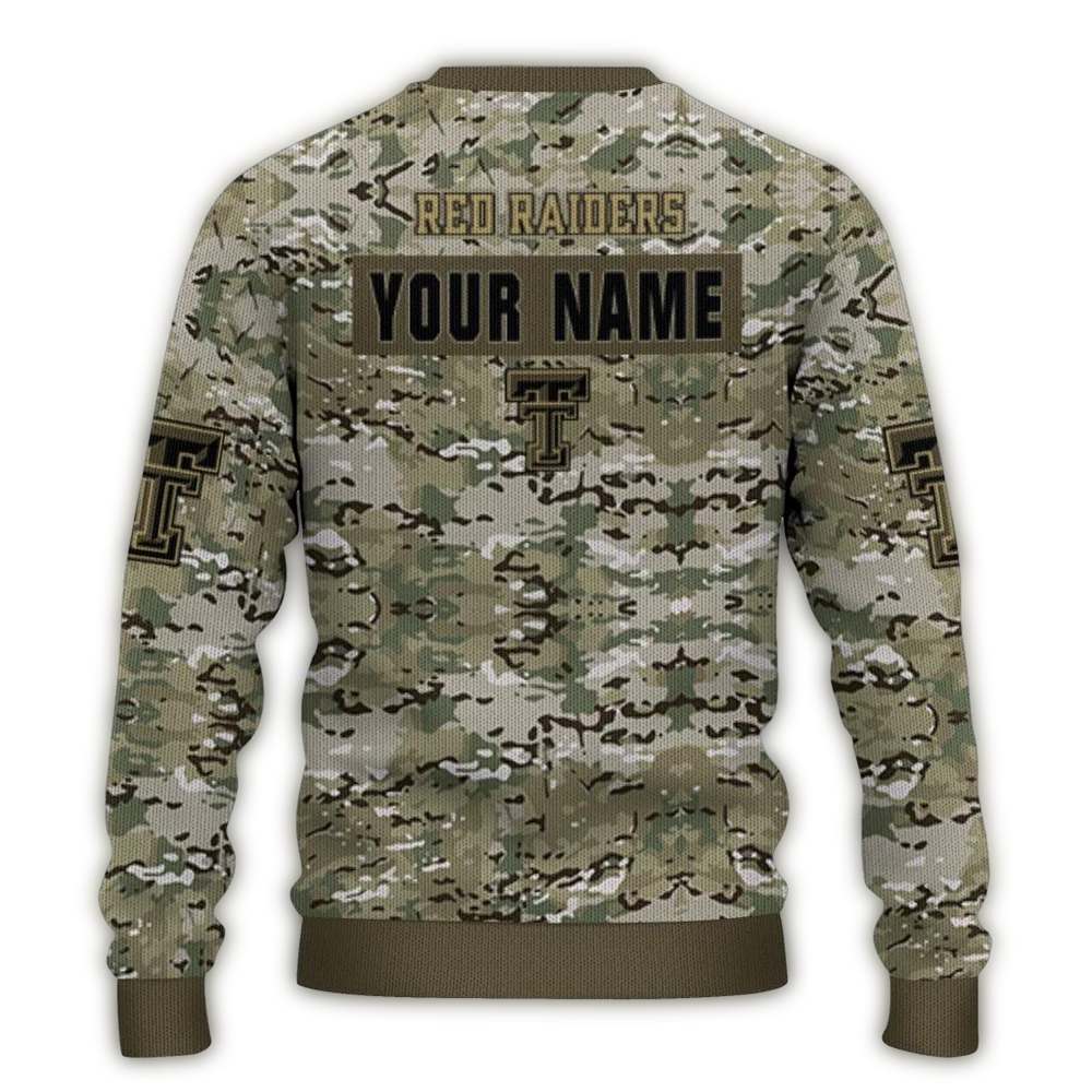 Get ready to show your Texas Tech spirit with our Personalized Texas Tech Red Raiders Camouflage Blend Ugly Sweater! Perfect for fans of all ages, this sweater is ideal for holiday gatherings, game day celebrations, or just lounging at home while repping your team. With a fun camouflage blend that stands out, you’ll bring festive flair wherever you go!