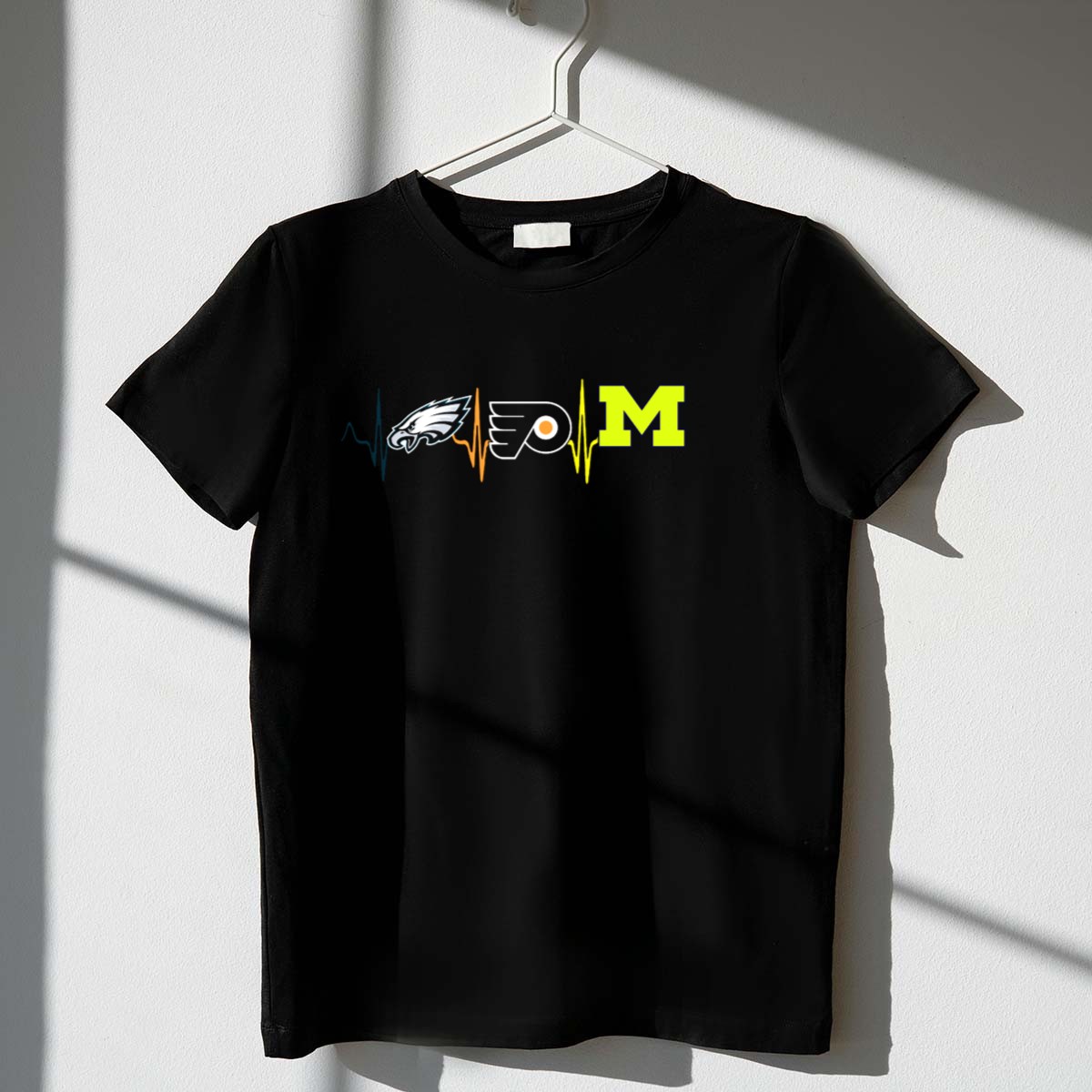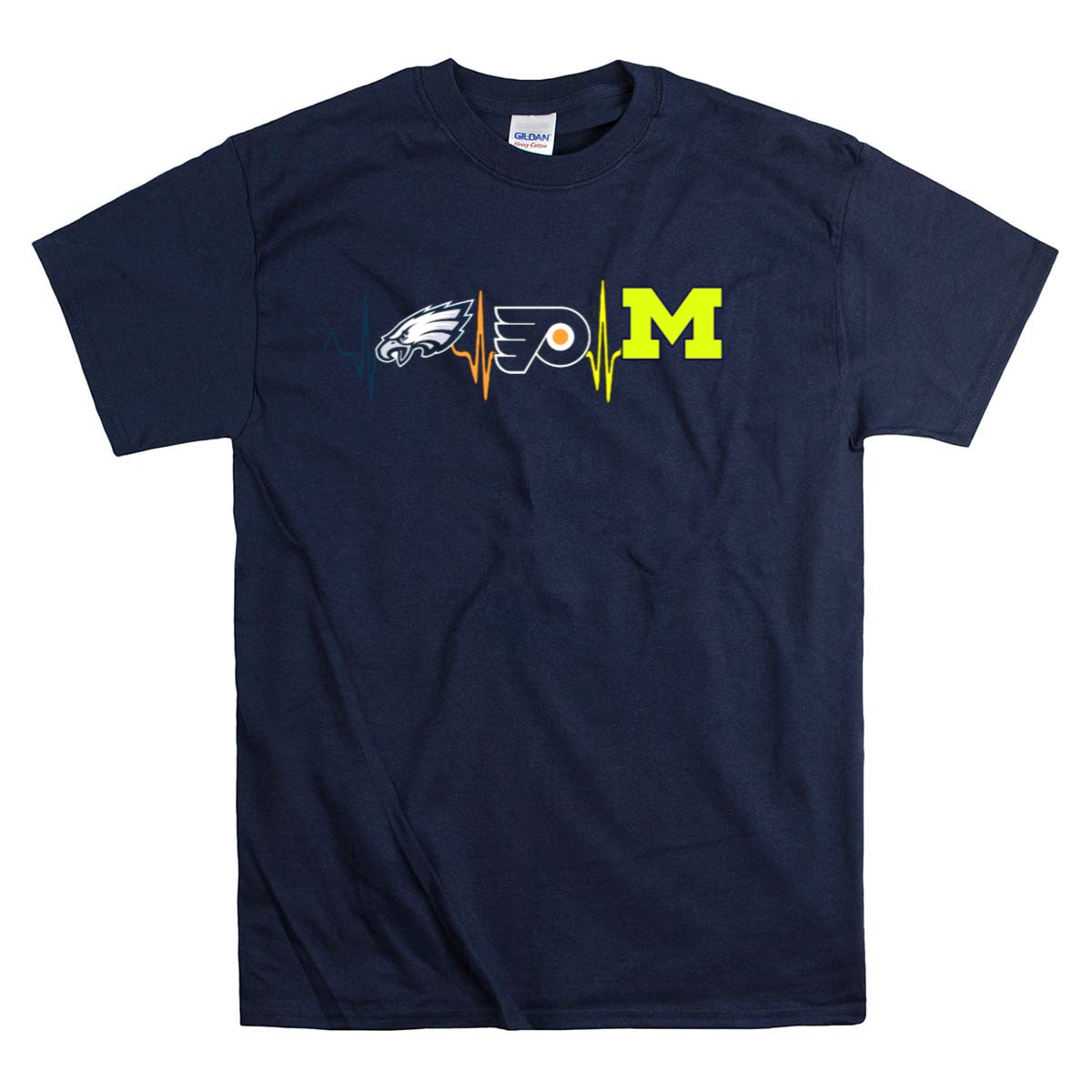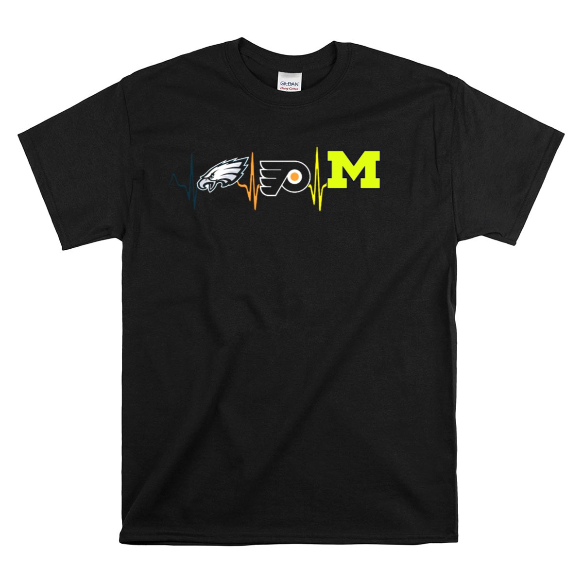 Philadelphia Eagles Flyers Michigan Wolverines Heartbeat T-Shirt
