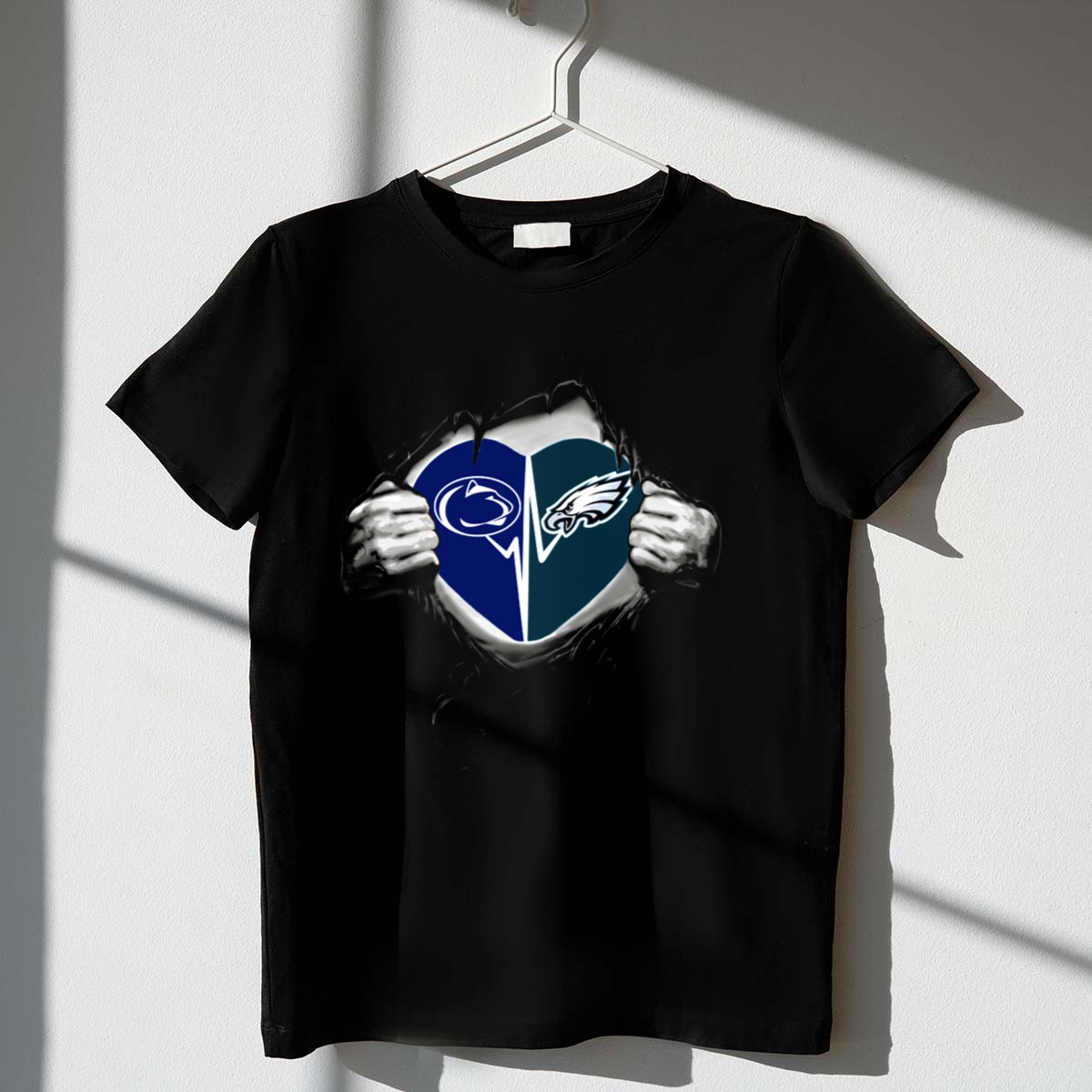 Show your love for both the Philadelphia Eagles and Penn State Nittany Lions with this unique fan-made graphic T-shirt! Perfect for die-hard sports enthusiasts, this shirt is ideal for casual outings, game days, or themed events where you want to showcase your team spirit. Made in the USA, its eye-catching design combines comfort with a bold statement, making it a must-have for any fan’s wardrobe.