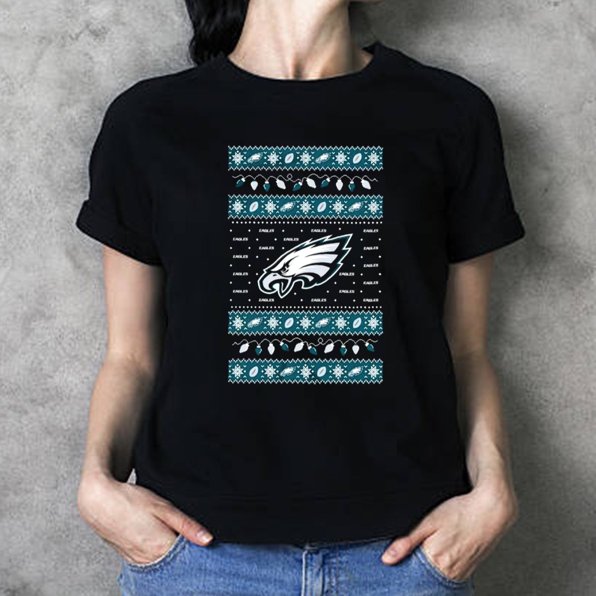 Be the first to review “Philadelphia Eagles Nfl Holiday Lights Ugly Sweater Christmas Eagles Logo Pattern T Shirt”