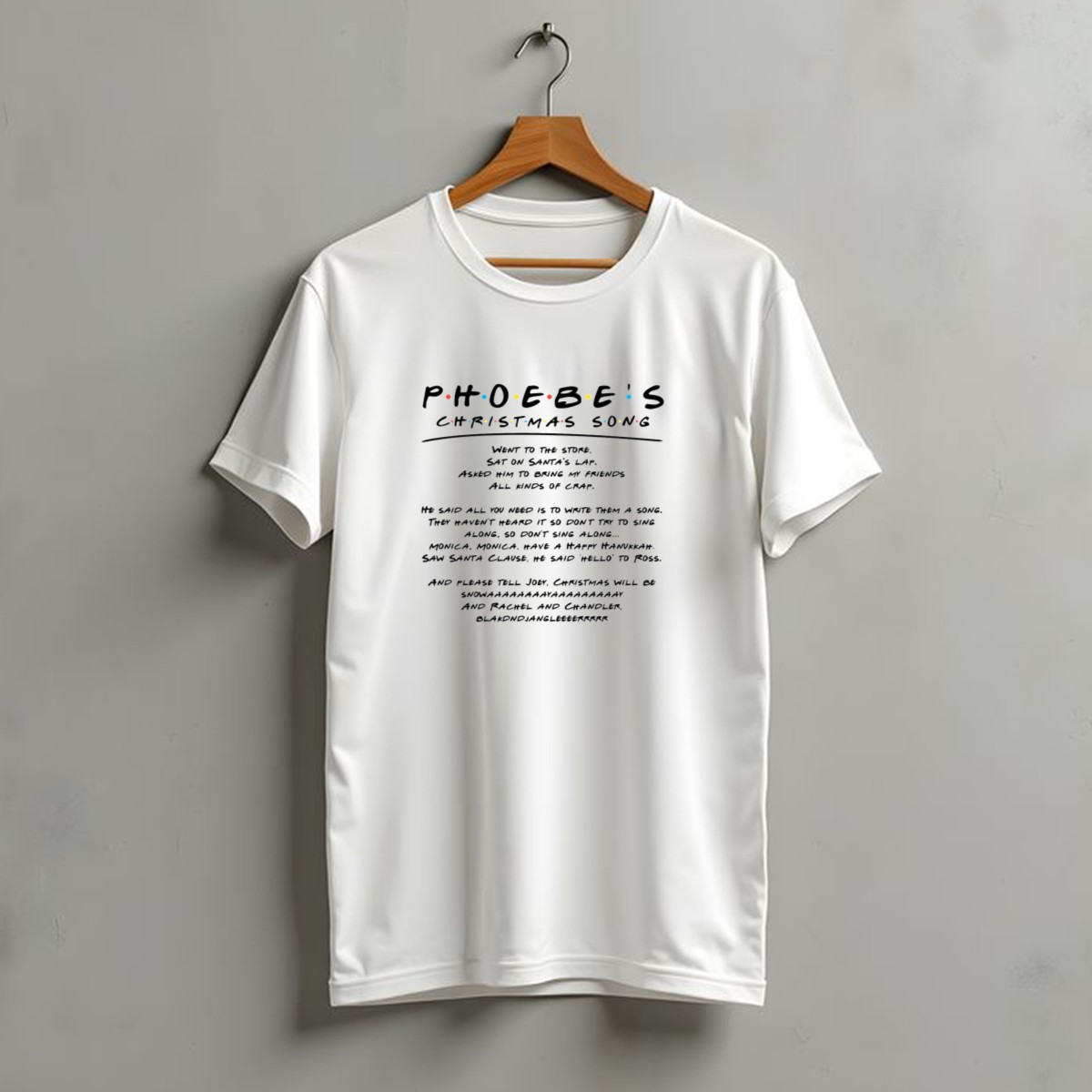 Celebrate the holiday spirit with our Phoebe’s Christmas Song Went To The Store Sat On Santa’s Lap Friends Inspired T-Shirt! Perfect for fans of the iconic TV show, this shirt adds a playful touch to your casual wardrobe. Whether you’re attending a themed party, celebrating with friends, or simply enjoying a cozy day at home, this fan-made design will surely spark joy and laughter. Crafted with care and printed in the USA, it’s a unique piece that brings a festive flair to any occasion.