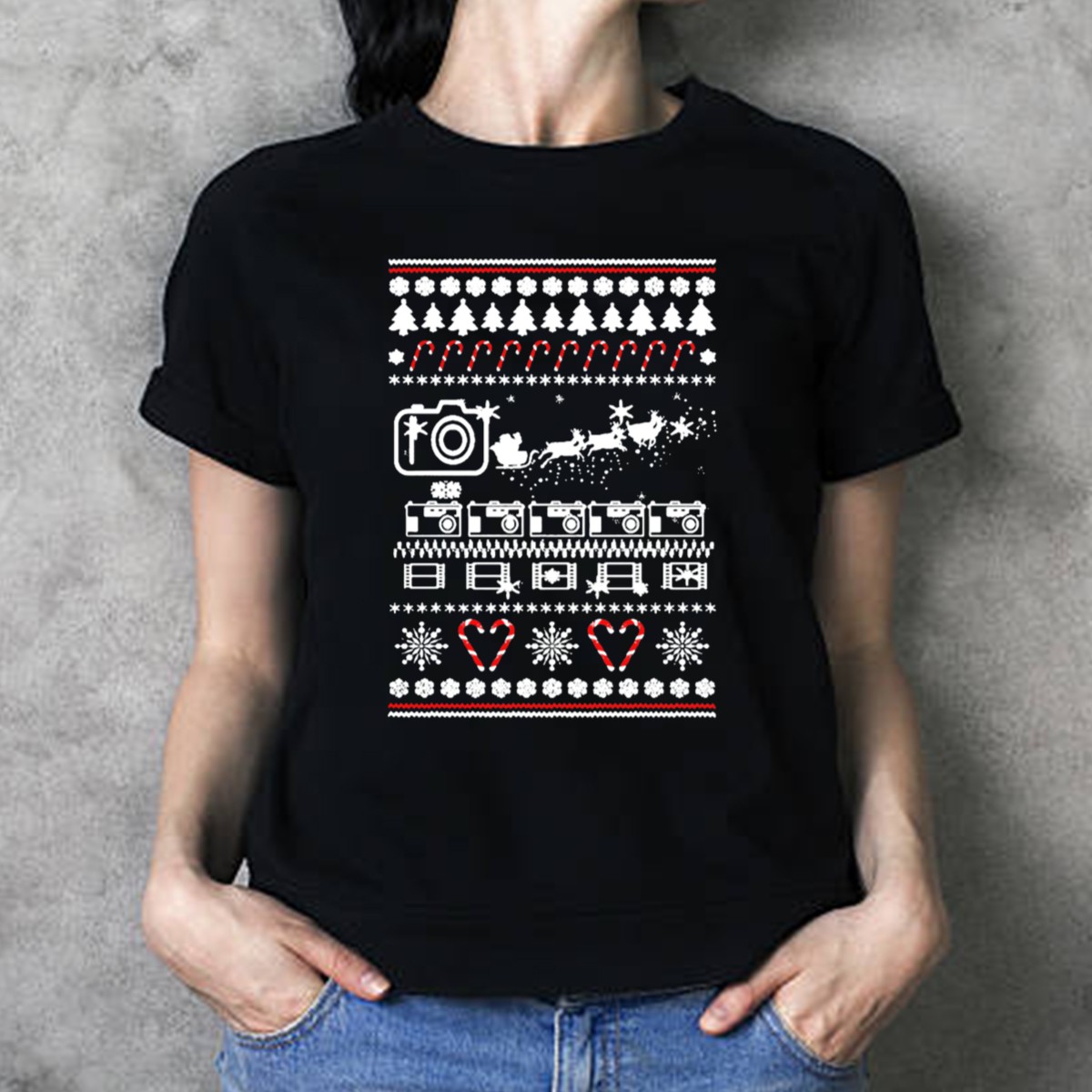Celebrate the festive season with our Photographer Ugly Christmas Sweater Camera Santa Reindeer Snowflakes T-Shirt! Perfect for photography enthusiasts and holiday lovers alike, this unique shirt combines the joy of Christmas with a fun, creative twist. Whether you’re attending a themed event, gathering with friends, or simply enjoying your daily wear, this fan-made design is sure to bring smiles and spread holiday cheer. Printed in the USA, it’s the ideal choice for anyone looking to showcase their passion for photography while embracing the spirit of the season.