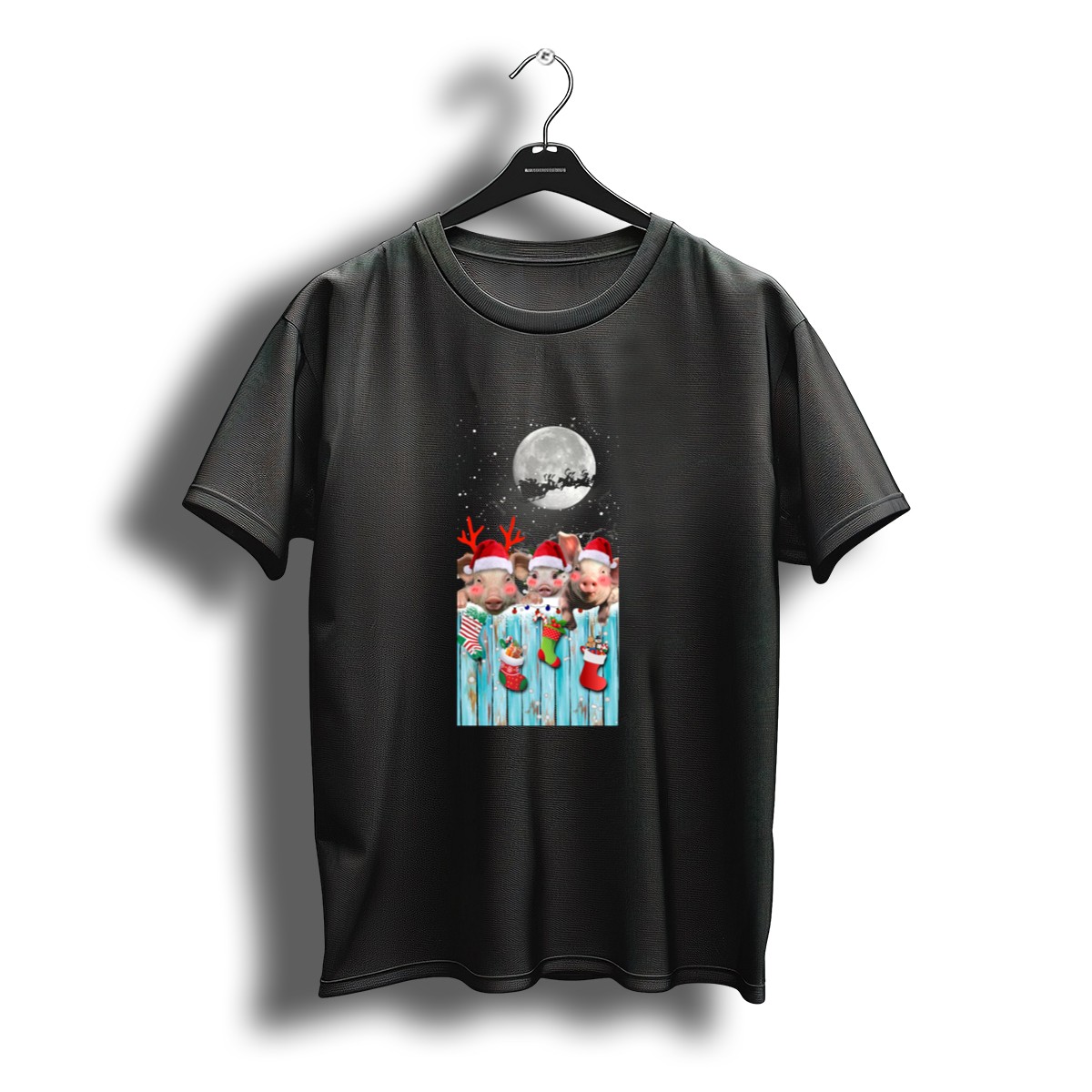 Celebrate the holiday season with our delightful Pig Christmas Sock Santa Hats And Moonlit Farm Scene T-Shirt! Perfect for animal lovers and festive spirits alike, this shirt brings a playful twist to your casual wear. Ideal for themed events, family gatherings, or simply lounging at home, it’s the perfect way to showcase your fun personality while staying comfortable. Plus, with its unique fan-made design printed in the USA, this tee is sure to become a favorite in your holiday wardrobe.