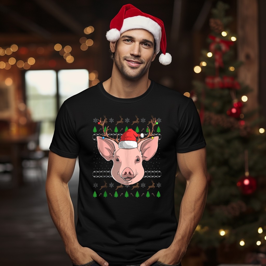 Get into the festive spirit with our Pig Santa Claus Hat Reindeer Antlers Christmas T-Shirt! This fun and whimsical design is perfect for animal lovers and holiday enthusiasts alike. Whether you’re attending a holiday party, family gathering, or just spreading cheer during the season, this shirt is your go-to choice for casual wear. Made with a fan-made design printed in the USA, it’s a unique addition to your holiday wardrobe that will surely turn heads and spark conversations.